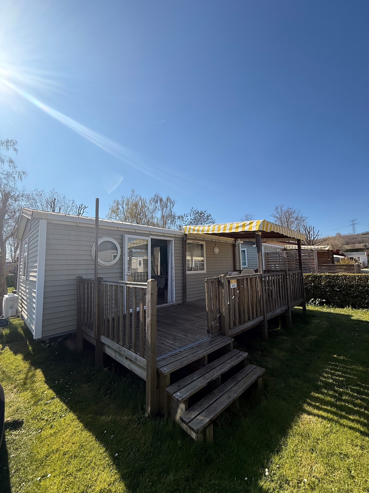 ✨ Underbar husvagn, uppvärmd och luftkonditionerad, 18 m2, fullt utrustad ✨ 🛏️ Mysig säng 140 cm 🚿 Uppvärmat badrum och torrtoalett Utrustat 🍽️ kök (mikrovågsugn, elspis, kylskåp ...) 🥐 GRATIS frukost första natten (te, kaffe, choklad, sylt, brioche ...) 🍾 Minibar mot tillägg Exceptionell 🏔️ utsikt över Rhônedalen och bergen i Alperna och Vercors 🐴 Närhet till ponnyerna ☀️ Liten terrass, trädgårdsmöbler 🎳 Boule- och Molkky-bana