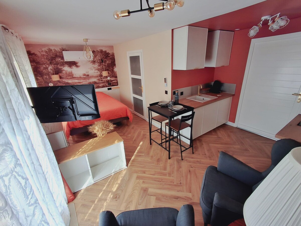 🍭 Upplev charmen i denna mysiga studiolägenhet på 30 m², belägen vid huvudgatan i Bourg-lès-Valence. Den är elegant, bekväm och funktionell och har ett pittoreskt, litet bohemiskt filmrum 🎬 Det ligger strategiskt 200 meter från en motorvägsavfart och en kort promenad från många bekvämligheter. Oavsett om du reser, passerar genom eller letar efter en cocooning kväll, kommer denna studio att välkomna dig med vänlighet 🌸 🅿️ Gratis parkering finns 10 meter från ytterdörren