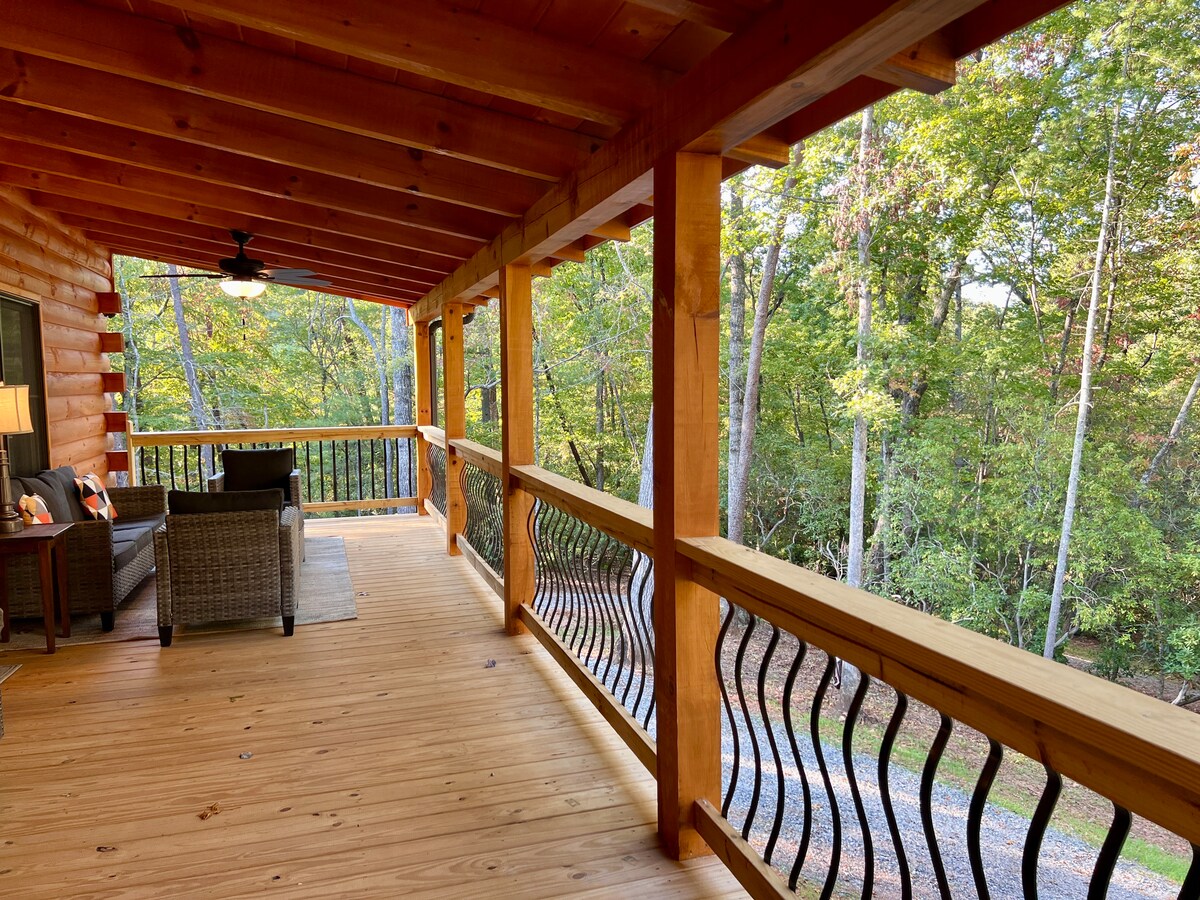Anpassad dubbel master suite stuga med skogsvy i vinlandet Dahlonega. Stugan ligger på framsidan av vår areal, strax utanför den nya asfaltvägen utan knepig uppfart. Stugan ligger 1,5 till 9,5 miles (5 till 20 minuters bilresa) från 13 vingårdar och bryggerier plus 18 minuter från Dahlonega torg och Alpine Helen. Vårt läge är också mycket bekvämt för många statliga parker, vandringsleder, vattenfall, mountainbikeleder, populära motorvägar och bröllopsplatser.