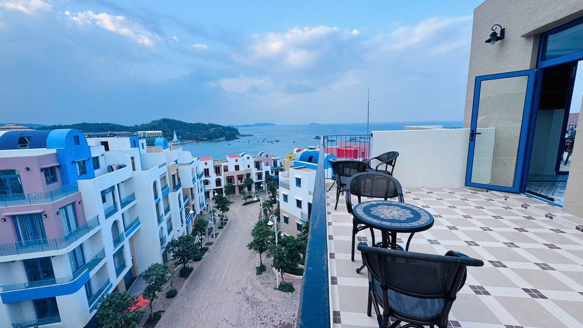 The spacious, clean, and impressive room features a private bathtub area, creating a truly private and relaxing atmosphere. Large windows overlook the peaceful streets, and a spacious, airy balcony offers a panoramic view of the vibrant, colorful surrounding neighborhood in the Santorini style. You will feel truly comfortable and impressed while relaxing in this beautiful room.