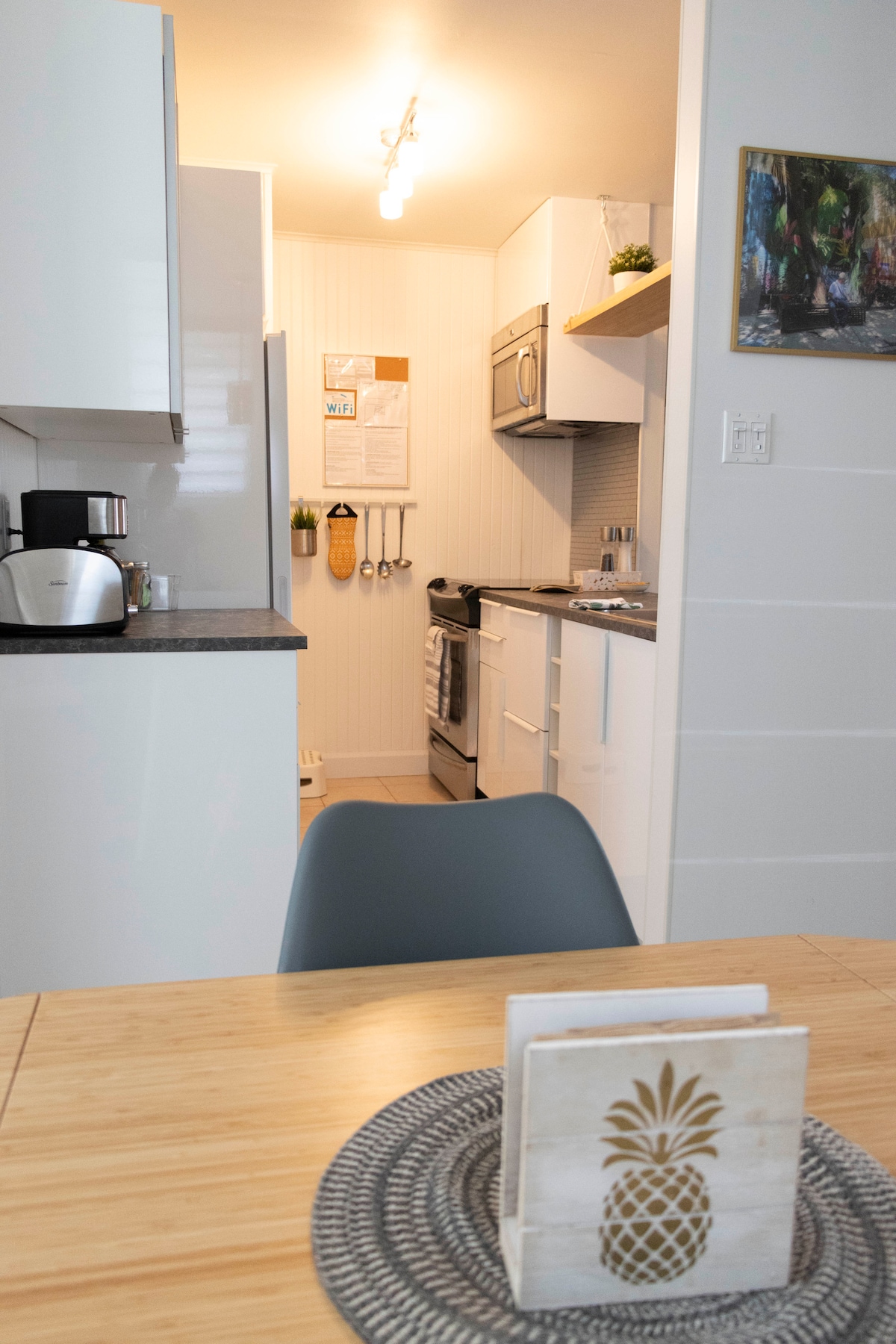 Trevlig, ljus lägenhet, till dagens smak, mindre än 2 km från Mont-Sainte-Anne och 30 minuter från Le Massif de Charlevoix och Quebec City. Ett slutet sovrum med dubbelsäng och en bäddsoffa i vardagsrummet, med mörkläggningspersienner. Smart-TV med kabel. Kaffe att välja mellan; Filterkaffebryggare, bodum och Nespresso Original (kapslar som kostar pengar). Köket är perfekt utrustat så mycket för en kortare eller längre vistelse; elektrisk fondue spis, mixer, slow cooker , matlagningsrätter etc. CITQ: 303457