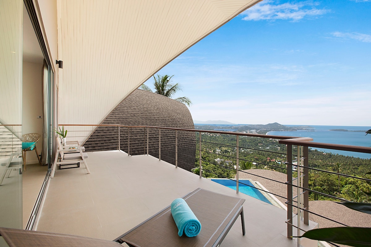 620 m² privat lyxvilla med 180° havsutsikt på kullarna i Chaweng → Daglig frukost och städning → 25 m hög oändlighetsbassäng → Gym, biljard, dart & bordtennis → Gästfrihet med personal på plats dygnet runt (engelska, thailändska) → Betongäggs skalbadkar→ Varje sovrum med eget badrum → Höghastighetsinternet och WiFi → Cinema smart-TV med Netflix → Bose ljudsystem → Gratis kaffe och dricksvatten → Vatten och el ingår → 10 m bilresa till stränder → Fler tjänster tillgängliga på begäran