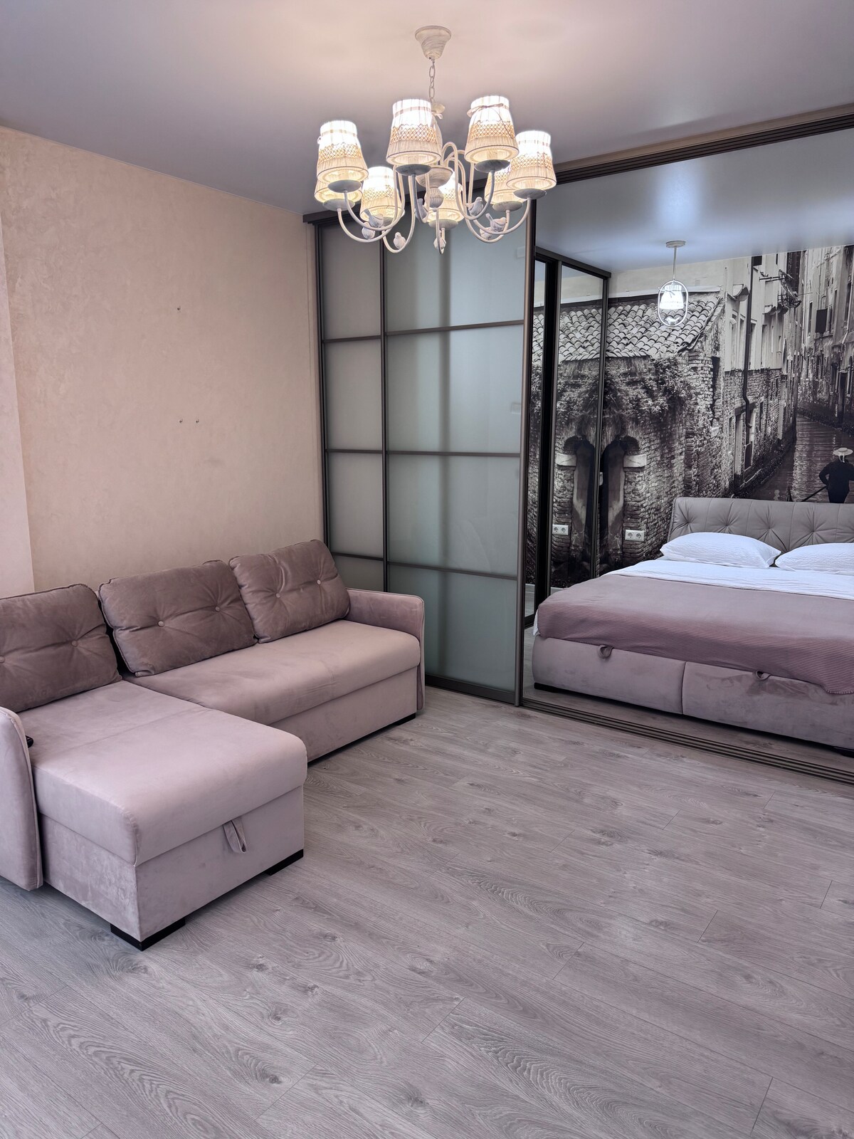 Det finns ett ljus dygnet runt. Underbar lägenhet. Det bekväma läget och den mysiga designen av lägenheten kommer att ge dig en oförglömlig känsla. Lägenheten är utrustad med allt du behöver för en bekväm vistelse. Lägenheten har en sovplats med en stor dubbelsäng och ett rum med en matplats och en fällbar soffa (rum ligger i anslutning), ett litet kök med allt du behöver, ett badrum med ett badkar. Fönstren i lägenheten har utsikt över en lugn innergård, vilket skapar en lugn atmosfär i hjärtat av staden.