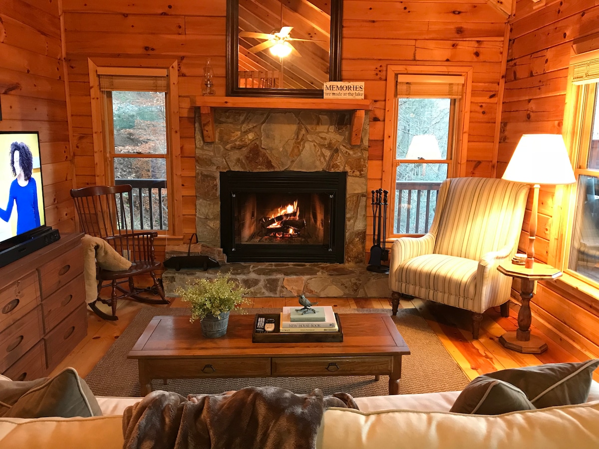 Bear Cliff cabin offers stunning mountain views and a short drive from Atlanta, Georgia to Blue Ridge mountains. This charming two-bedroom, two-bath cabin that sleeps six and has a master bedroom on the main floor. The guest bedroom with a queen bed, and a pull-out queen-size sofa bed, that makes it a perfect getaway for the family. The master bedroom also has access to Rich mountain(GA) views. Snuggle up by the wood-burning fireplace in the living room and enjoy the Blue Ridge mountains. Enjoy!