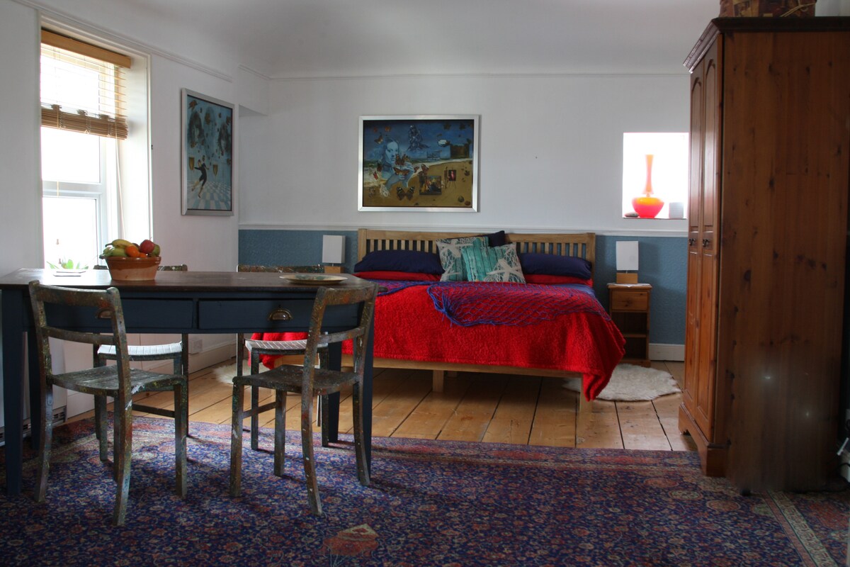 Underbar tyst ljus fylld Studio Lägenhet. Minuter från stränder och nära restauranger, affärer och busslinjer. Denna rymliga generöst utrustade 1:a våningen plus uterum, har ett fullt utrustat kök med diskmaskin, ugn, mikro, kyl och tvättmaskin. Perfekt kombination av absolut frid, med ett glittrande nattliv, några minuter bort. En god natts sömn garanteras med lyxen av ett bad och extra tjock madrass på en super kingsize säng. Det finns en delad trädgård.