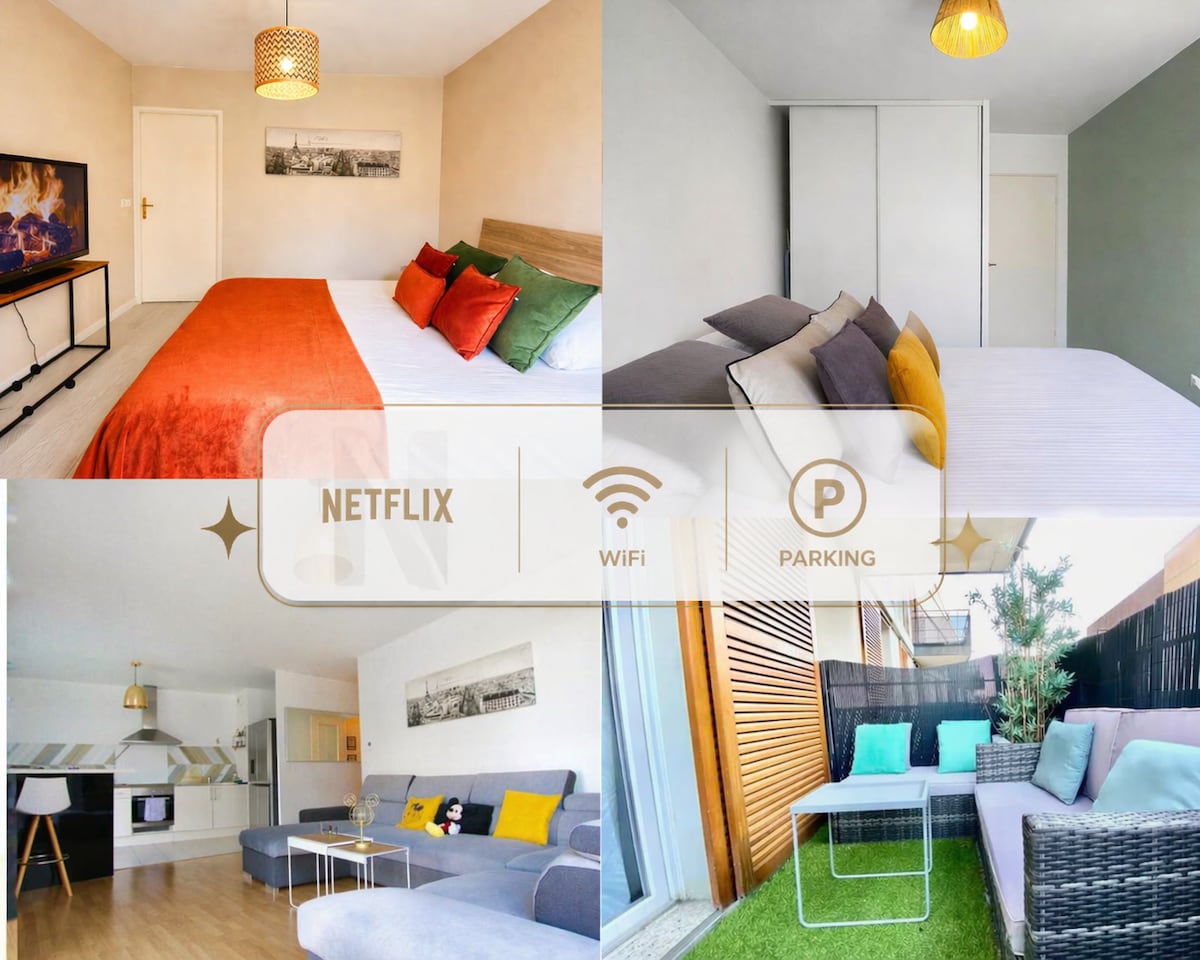 4,95 av 5 i genomsnittligt betyg, 129 omdömenDisneyland-lägenhet, terrass, gratis parkeringsplats