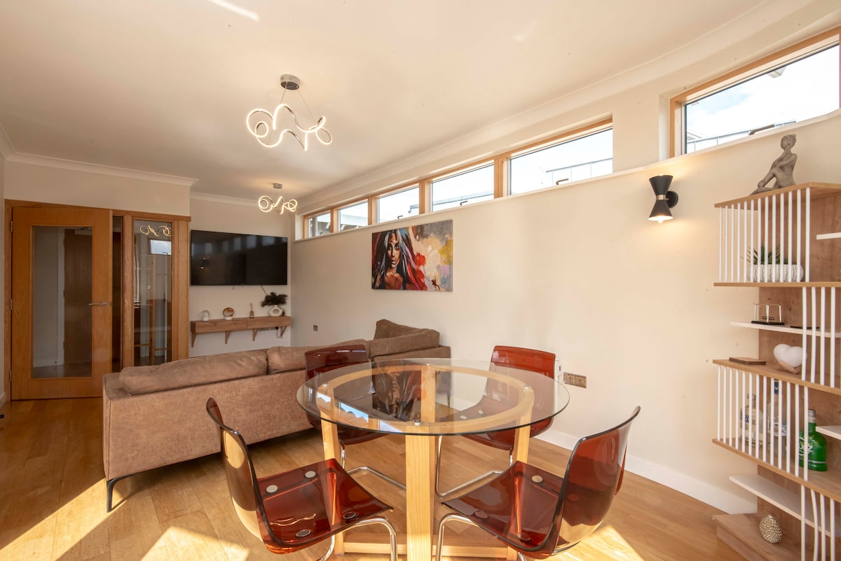 Mycket storlägenhet med öppen planlösning och Juliet balkong ✔ 10 minuter från The Grafton köpcentrum och biograf ✔ ✔ Privat parkering ✔ Cykelförvaring Badrum i ✔ rummet Extra familjebadrum ✔ Fullt utrustat kök ✔ Upp till 20Mbps WiFi-anslutning ✔