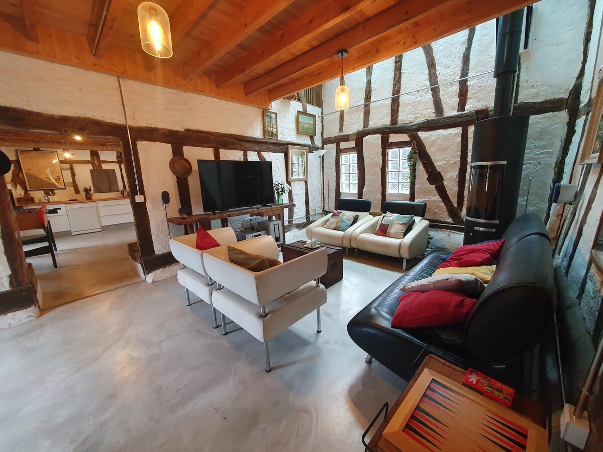 Charmigt korsvirkeshus på 60 m² beläget på landsbygden. Perfekt plats för att ladda batterierna i lugn och grönska Lantlig inredning och mycket komplett utrustning Sängarna är bäddade vid ankomsten Självständig ankomst möjlig Butiker och restauranger tillgängliga med bil Boende speciellt inrett för vistelser från några dagar till flera månader Nytt: Huset är nu anslutet till fibernätet vilket gör att du kan arbeta under bra förhållanden
