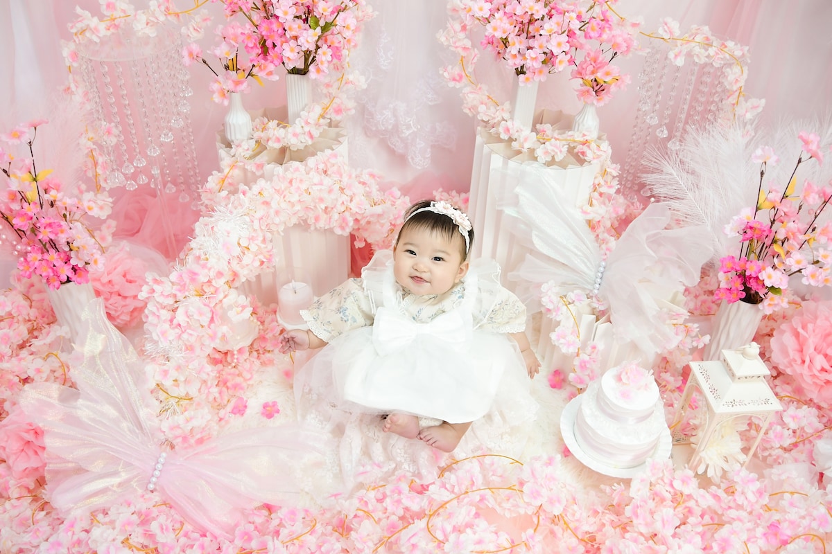 Engelskvänlig fotografering av spädbarn och barn i kimonostil. Njut av vackra foton med sakuratema året runt. Fotografering i en inomhusstudio är säkert och väderbeständigt för familjer som reser i Japan.