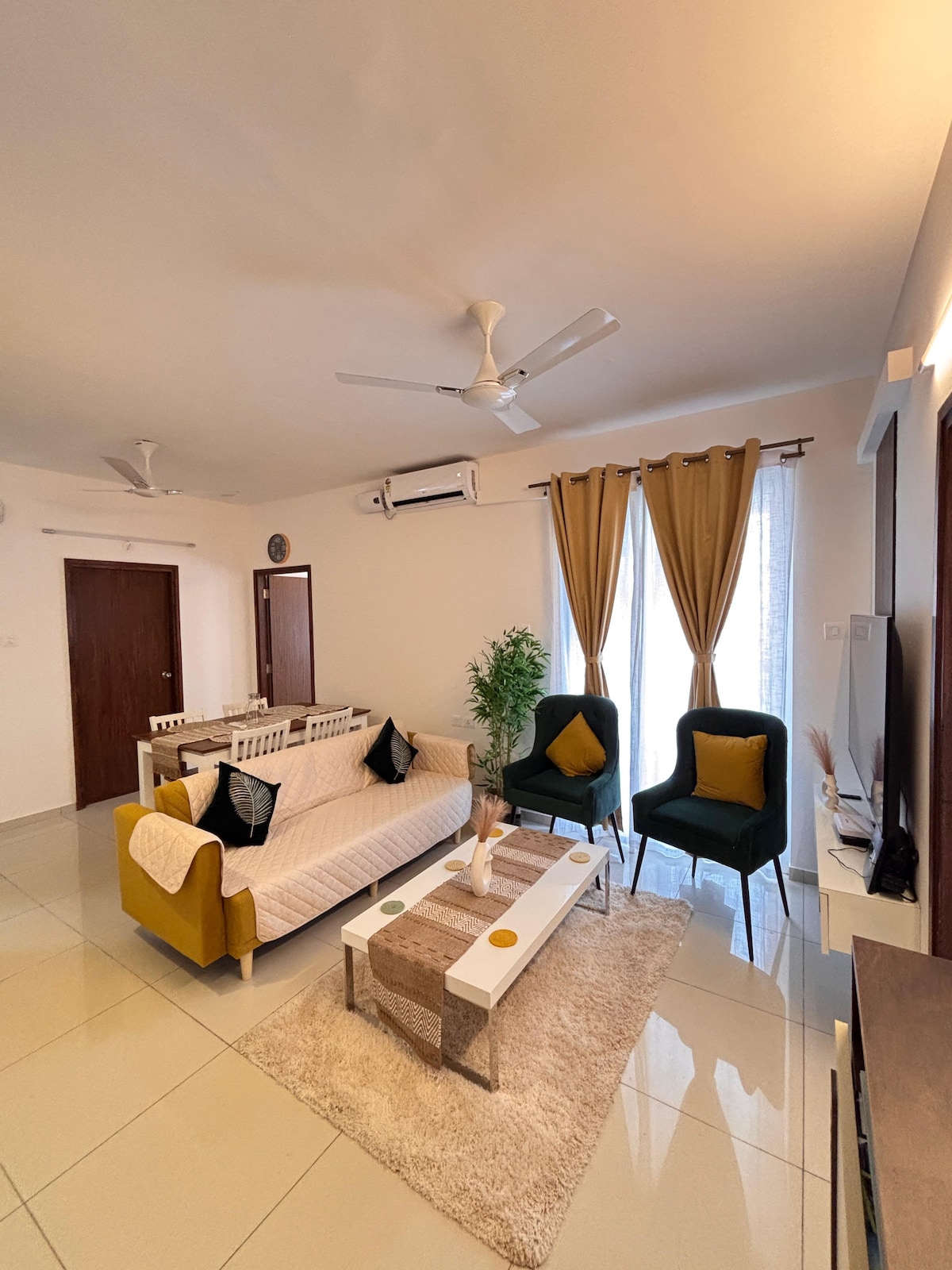 Upptäck lycka på Lycka, en elegant smart lägenhet i Dabolim. Denna fridfulla tillflyktsort kommer att ge glädje till din Goan-utflykt. Njut av 2 bekvämt möblerade sovrum och njut av lugna stunder på den privata balkongen. Upplev lycka i poolen, ett fullt utrustat gym, ett spelrum för vänskaplig tävling och en gemensam lat pool med ett barnområde. Lycka är din glädjeplats i Goa, där avkoppling och fina minnen flätas samman.