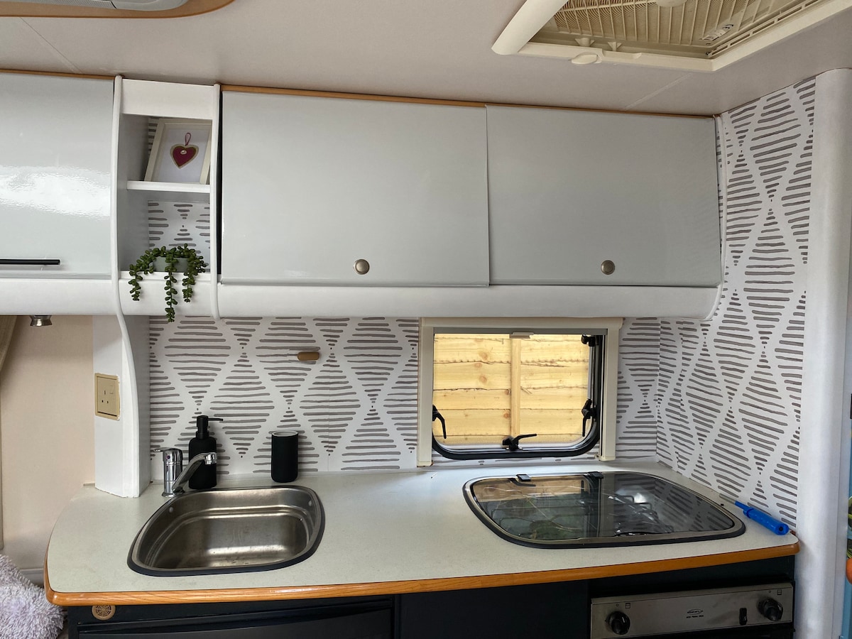 Romantisk glampingskolebuss med bubbelpool i Sussex