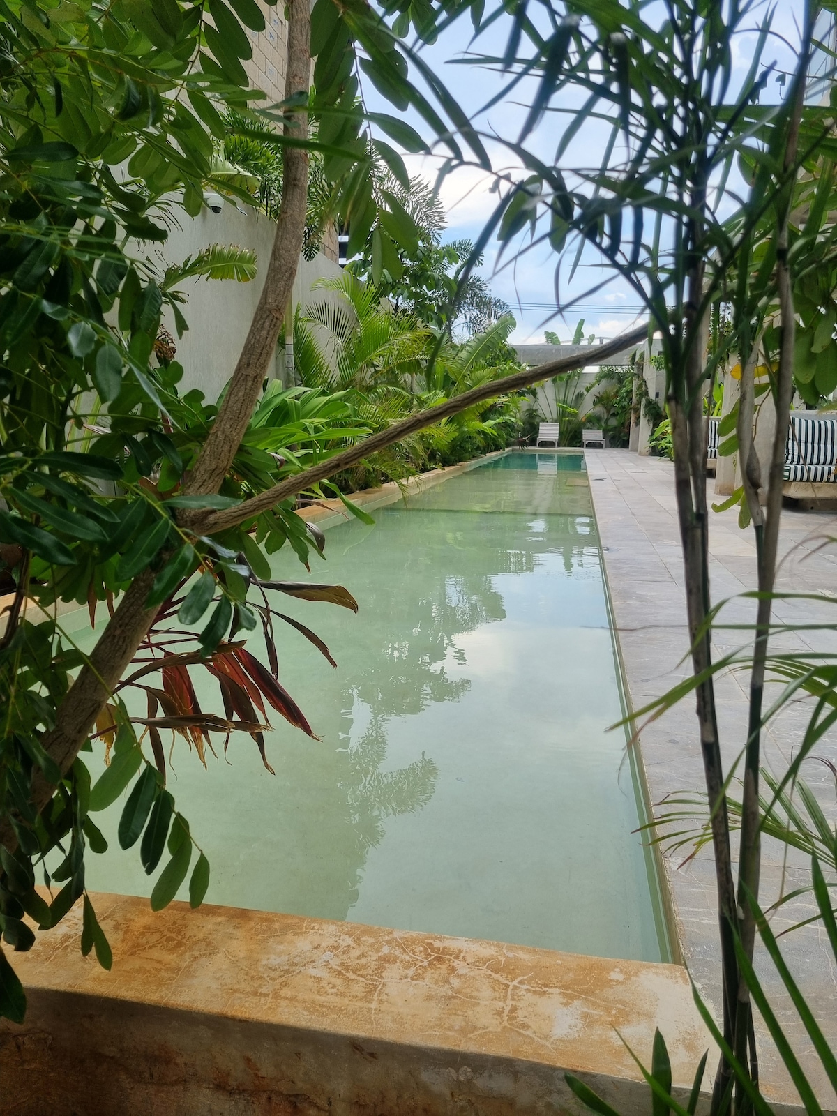 Fördjupa dig i den fridfulla atmosfären i "La Casa Azul Celeste", ett utsökt hem hemifrån som ligger bara några minuter från de bästa stränderna i Yucatan. Njut av lyxen i din privata minipool eller njut av de gemensamma utrymmena med rymliga pooler, en charmig lekplats för de yngre och ett enkelt gym för träning. Varje detalj på "La Casa Azul Celeste" är utformad för din maximala komfort och avkoppling, vilket gör det till en perfekt tillflyktsort för en oförglömlig och avkopplande semester.