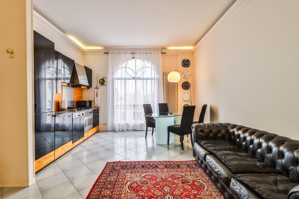Elegant, helt renoverad lÀgenhet ovanför de berömda porticoes i Bologna, nyligen utnÀmnd till vÀrldsarv av Unesco. Utrymmet har ett stort badrum och ett öppet utrymme med ett fullt utrustat kök och ett vardagsrum med en bekvÀm sÀng för tvÄ personer. Under restaureringen upptÀcktes fresker frÄn 1800-talet och förstÀrks nu av ett sofistikerat belysningssystem. Den raffinerade inredningen pÄminner om Rococo överflöd och avantgarde frÄn 1970-talet.