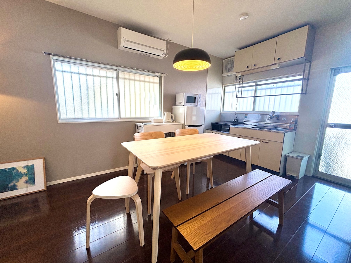 ✴Nära havet Det är en 2 minuters promenad till stranden! Det ligger också nära strandparken och populära restauranger, några minuters bilresa bort, vilket gör det till en utmärkt bas för fritid. ✴Rymlig 4LDK, rymmer upp till 8 personer Rekommenderas för familjesemestrar eller gruppvistelser. ✴Gratis parkering på tomten för 2 stora bilar Parkering är möjlig om den tredje bilen är ett lätt fordon eller kompakt ✴Kök och grundläggande kryddor ingår Disk och kokkärl finns också. ✴Grillning på verandan Grundläggande grillverktyg tillhandahålls för dig. "✴Hemmabio" under stjärnhimlen En speciell upplevelse där du kan njuta av en grill och en stjärnklar himmel och en film på samma gång. Du kan njuta av att titta på filmer medan du kopplar av med den senaste Aladdin-projektorn och Yogibo-soffan. Jag lämnar också tecknade serier.Attack på Titan Vi har också en Nintendo Switch. Det är också bra att vidta åtgärder mot insekter✴. Insektsmedel finns på verandan. På grund av den naturliga omgivningen kan insekter dock ibland komma ut. * Vi hoppas att du kommer att njuta av det som "en del av upplevelsen i naturen". ✴Rena sängkläder och tvättmöjligheter Vi tillhandahåller en ansiktshandduk och badhandduk för antalet gäster. Tvättmaskin med torktumlare och torktumlare för sinnesro.