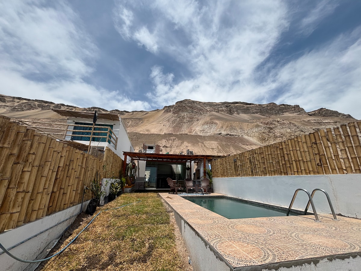🌴 Njut av en perfekt tillflyktsort i vårt vackra boende med pool i Chincha 🏡💦 Rymligt, lugnt och mycket välkomnande, perfekt för avkoppling och för att dela oförglömliga stunder med familjen eller vännerna. Vårt hus erbjuder bekväma och väl upplysta utrymmen, perfekta för avkoppling och för att koppla bort från stadens stress. Dessutom ligger vi 5 minuter från centrala Chincha.