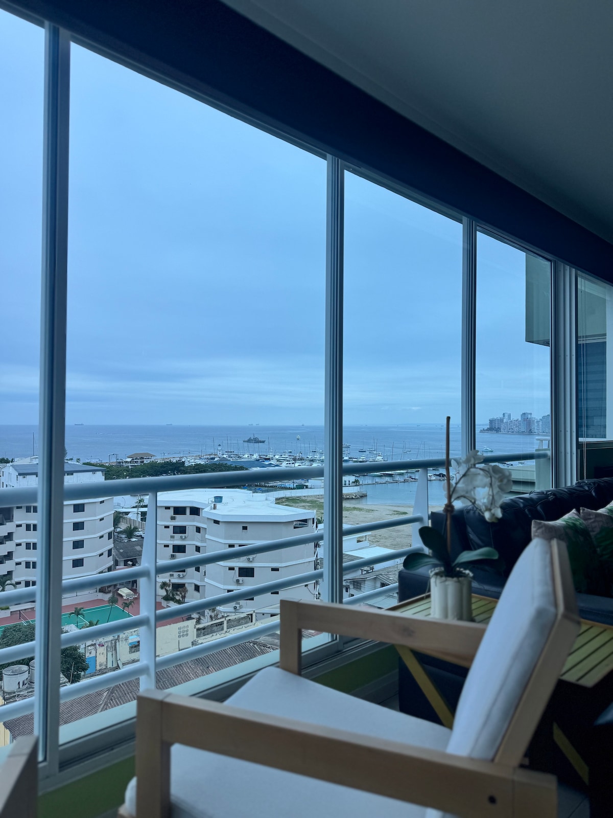 Ett kvarter från entrén till La Chocolatera, ett kvarter från tornen ”Punta Pacifico”, med havsutsikt i Salinas-Chipipe med halvöns vackraste strand. Fullt möblerat, luftkonditionering i alla 3 sovrum, wifi och smart-TV. Lägenheten levereras med en SUP-bräda, en surfbräda (lång bräda) och en boxningssäck med handskar. Lägenheten ligger på översta våningen (4:e våningen) och har ingen hiss.