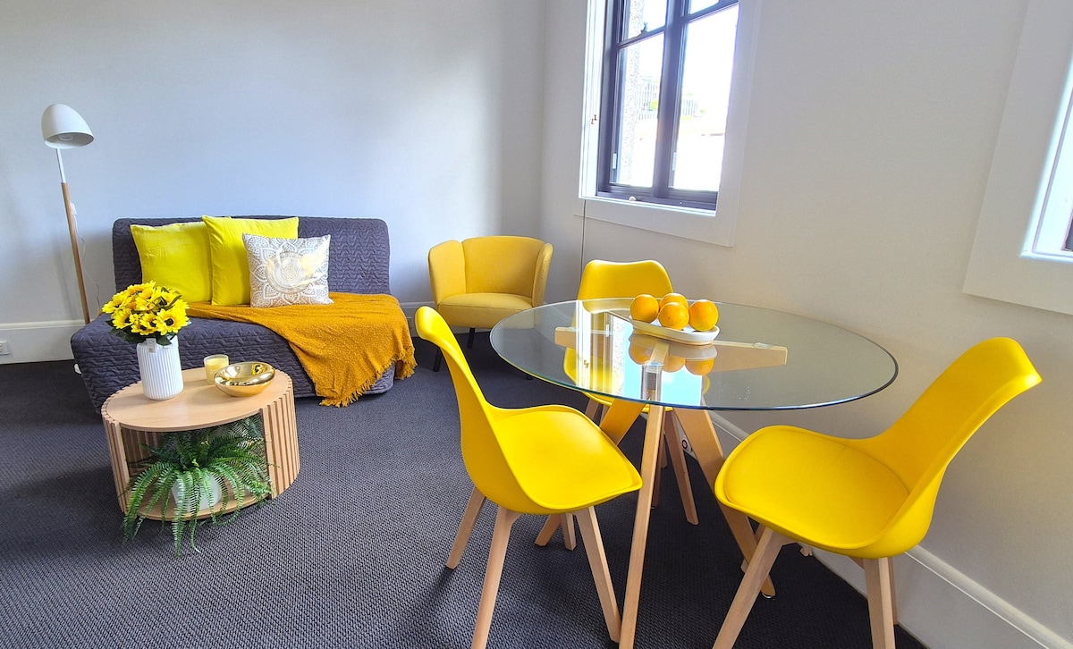 Njut av en stor, elegant och välutrustad lägenhet belägen i "vibe" konstnärs/studentområde med närliggande tillgång till butiker/restauranger/kaféer. Enkel promenad till viktiga Sydney CBD platser nära Unis och Broadway med AC. Östlig balkong är härlig på morgonen medan en privat trädgårdsgård också är tillgänglig utanför det separata sovrummet med queen bed. Solbelyst fullt utrustat kök med nya vitvaror och kaffemaskin. Stort vardagsrum har Sony 55" smart-TV och en Bose Bluetooth-högtalare.