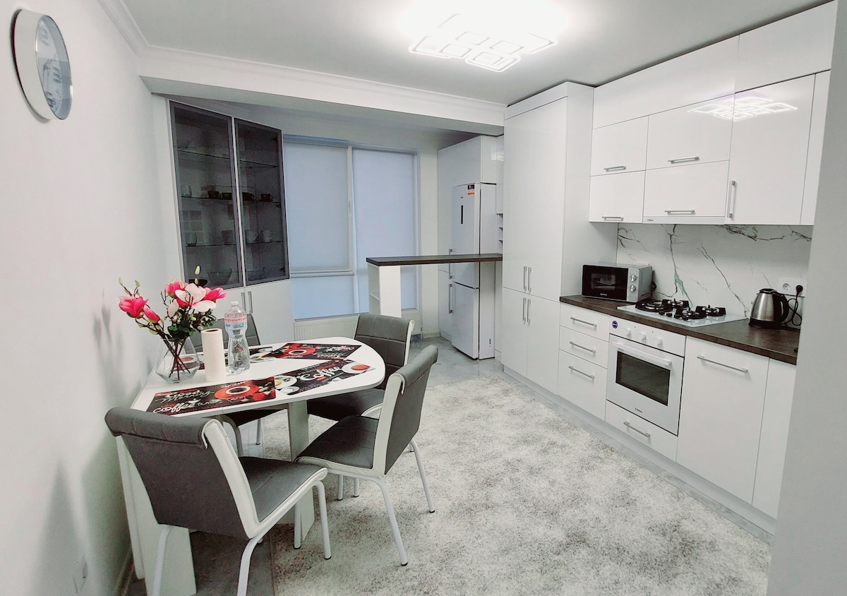 Välkommen till din eleganta urbana tillflyktsort i Chișinău! Denna 55 m² stora lägenhet ligger i den lyxiga Oasis Residence (Râșcani) och erbjuder soluppgångsutsikt från en privat balkong, en plysch king-size-säng, utdragbar soffa, Smart-TV med Netflix och höghastighets Wi-Fi. Det fullt utrustade köket inkluderar en Lavazza espressomaskin, diskmaskin, och mer. Njut av den fridfulla gated innergården, spa och gym på plats (extra kostnad), och direkt tillgång till Kaufland och ett köpcentrum. Komfort, elegans och bekvämlighet för dig