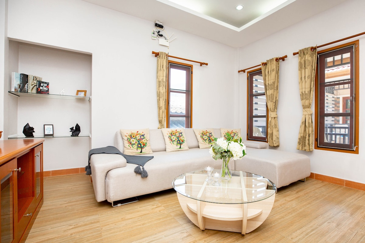 Njut av din strandsemester på Baan Mandala v7 — En nyrenoverad 3-rumsvilla med pool, som ligger bara en kort 500 meter eller 7 minuters promenad från Bangtao Beach — aktiviteter, strandklubbar, restauranger, butiker. Boat Avenue och Porto de Phuket ligger inom kort köravstånd. Villan är utrustad med väsentligheter för matlagning, inomhuskök och grillkök. Google Home-system och Nest-högtalare är installerade runt huset. Vår hushållerska kommer att tillhandahålla daglig städning förutom söndag.