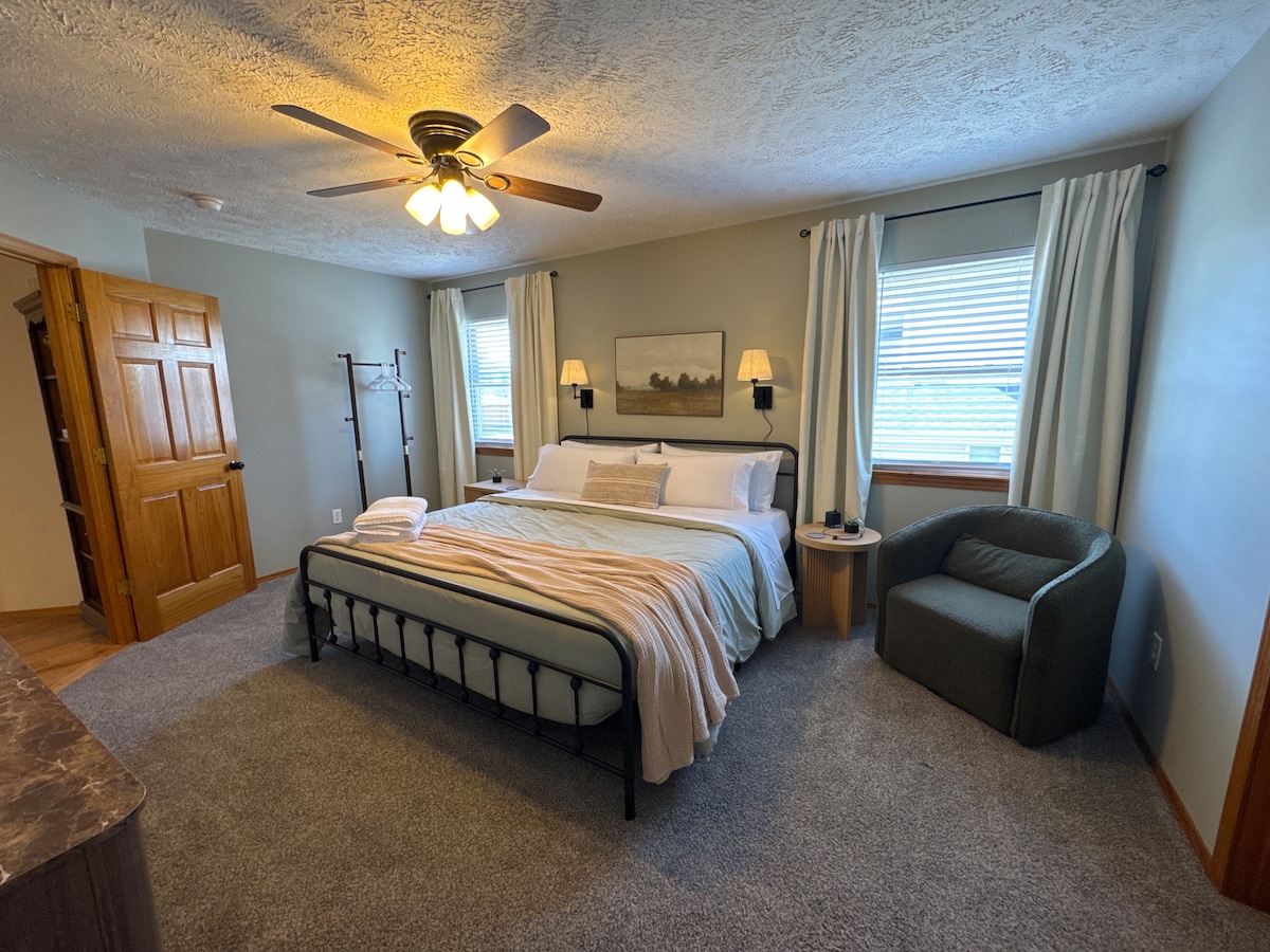 Welcome to the Historic Morgue! An eerie ambience greets you upon arrival..the history runs deep for this building. This antique, nationally recognized, historic building offers antique decor with a modern twist! Morgue decor throughout, rightly so..paying homage to its dark history. This is a loft setting offering a king bed, full size bed, twin and an antique settee(possibly suited for a small child). A large kitchen with small breakfast seating as well as a large table! And that bathroom!