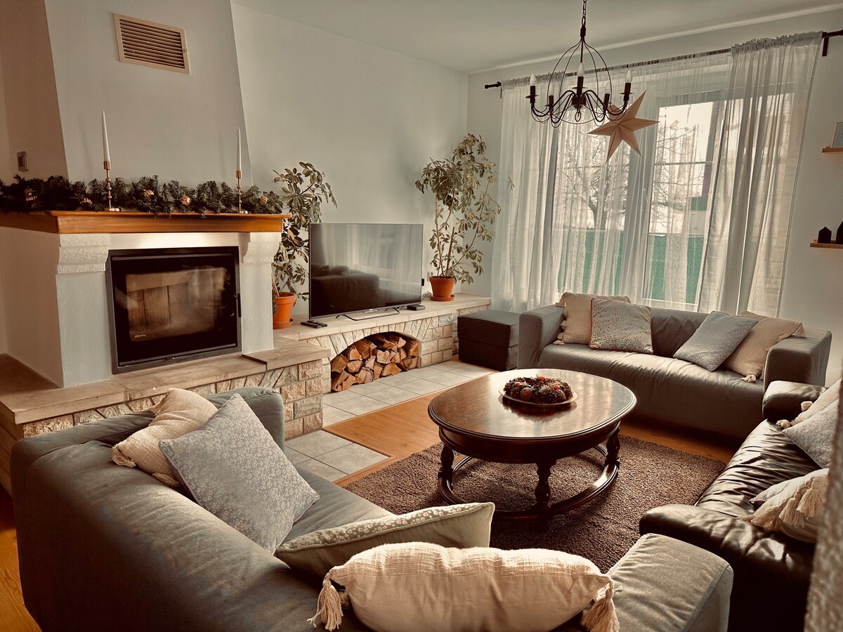 Du kommer att älska denna vistelse! Ett romantiskt minihus i utkanten av naturen med en uppvärmd badtunna ingår, där du kommer att bli förtrollad av tusentals stjärnor och oförglömlig romantik på kvällen. Ett fullt utrustat hus erbjuder allt du behöver för en bekväm vistelse - från en rymlig soffa med TV och Netflix, perfekt för kvällsavkoppling, till en flaska vin du får som en gåva från oss. Du kommer att njuta av den vackra omgivande naturen och sevärdheterna i området. Kom och koppla av, upplev den frid och romantik du inte kommer att glömma!