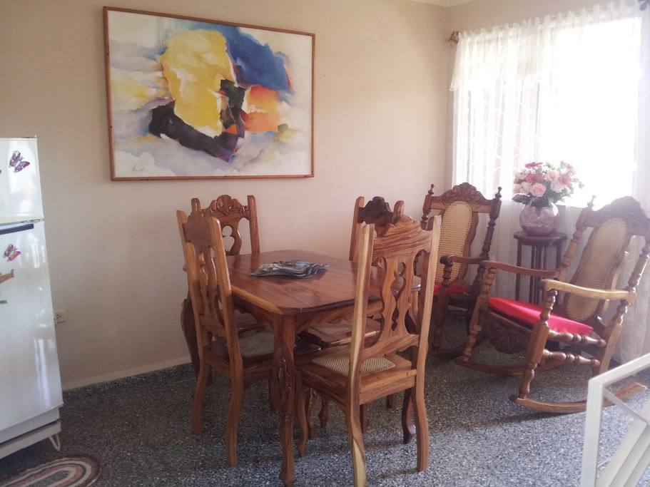 Mitt hus med en kolonial struktur byggdes 1940 med kolonial arkitektur och byggdes om 2002. Inuti har det modern arkitektur och har alltid tillhört vår familj, så vi anser att det är familjeegendom. Vi har en lägenhet och ett privat rum, med maximal kapacitet för en familj på 6 personer. Jag bor bara 50 meter från Cienfueguero-promenaden. Vi inbjuder dig att tillbringa en trevlig vistelse i vår Perla del Sur. Vi har elverk