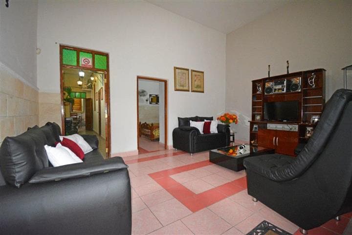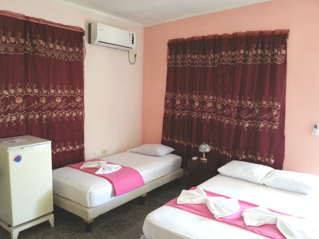 Vårt pensionat ligger nära Paseo del Prado (300 m). Det är väldigt nytt (2016), modernt och mysigt utrustat. Det finns 2 rum med bekväma sängar (ett med en dubbelsäng och ett med två enkelsängar). Rummen är med luftkonditionering, fläkt och direkt anslutet badrum med en modern dusch. Du kommer att gilla den mycket fina takterrassen, där du kan sitta och njuta av kvällen med ett glas lokal rom. Det räknas med en elgenerator vid strömavbrott. Du kan också ha en bra frukost för 5 $ per person