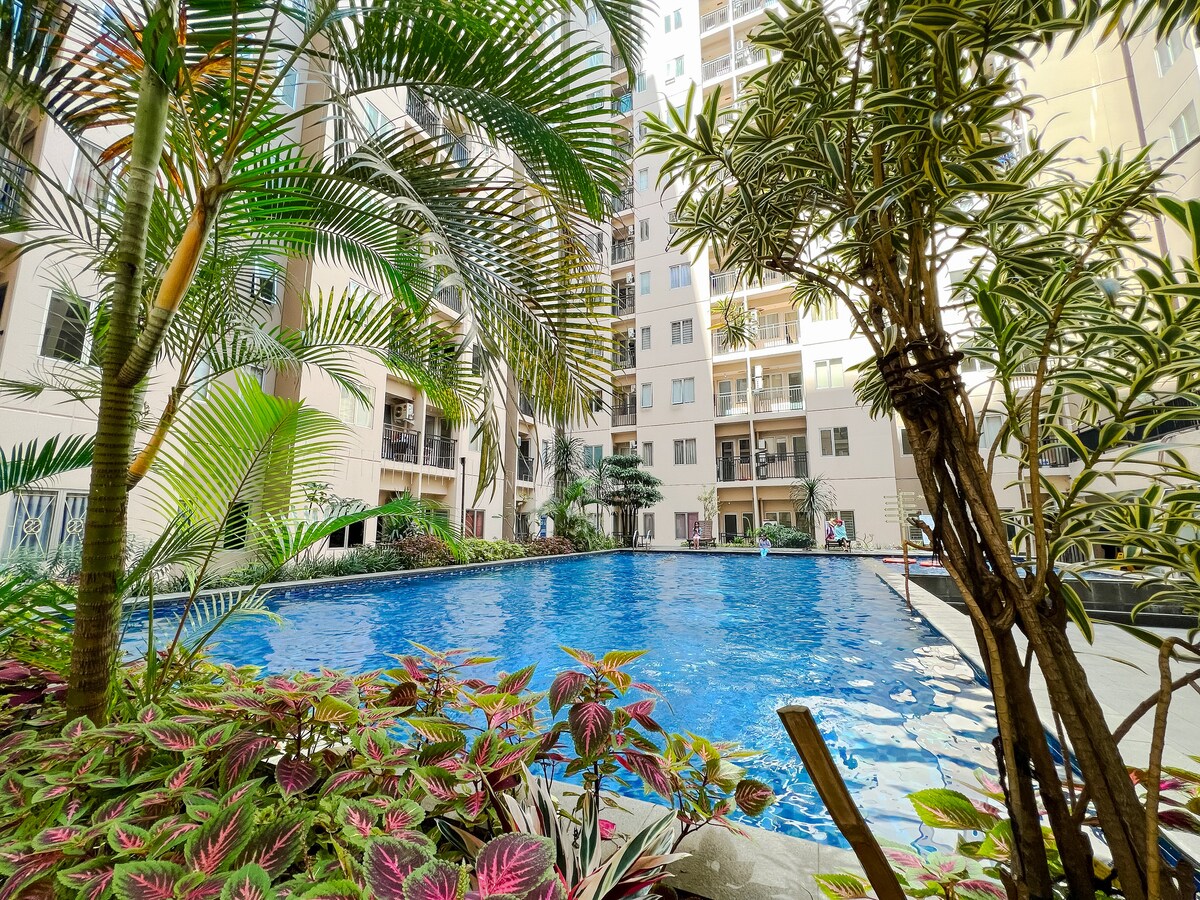 Fördjupa dig i det livliga hjärtat av Bandung i denna eleganta studio på 10: e våningen i Parahyangan Residences. Njut av moderna bekvämligheter som ett fullt utrustat kök, höghastighets Wi-Fi och en 50" smart-TV med Netflix. Njut av resortfaciliteter, kontaktlös incheckning och närliggande bekvämligheter för en perfekt vistelse, semester eller arbete hemifrån. Nu med omvänd osmos dricksvatten, bortskaffande av matavfall, tvättmaskin, högtalare och musikstreamer.