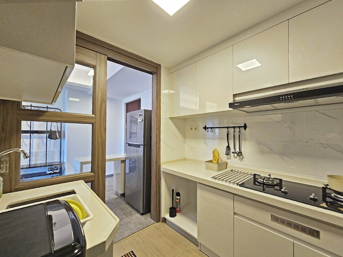 på 30:e våningen med 113 kvm stort vardagsrum. 2 sovrum + 2 badrum. primärt sovrum har en dubbelsäng med ensuite. sekundärt sovrum har en dagssäng med 2 lådor och 2 madrasser (total storlek 160x200cm). 2 extra golvmadrasser tillhandahålls med storlek 100x200 och 80x190. som kan placeras varhelst gästerna föredrar. inga tandvårdssatser och tvättmedel för tvätt av kläder tillhandahålls. allt annat du normalt skulle förvänta tillhandahålls. städsovrum (på begäran) och halvbadrum är tillgängligt.