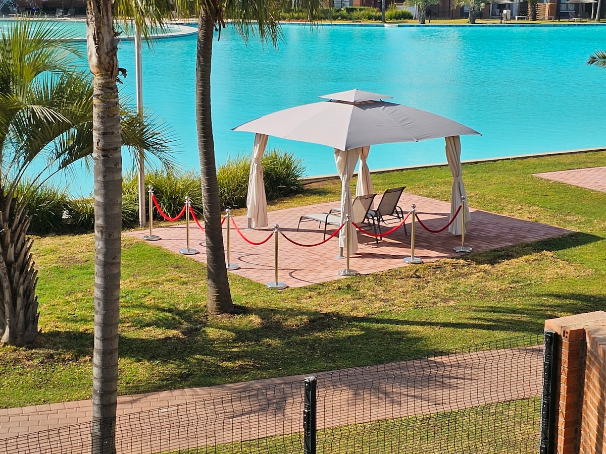 Come as family or friends to a water lovers paradise. There are many other activities as well to keep you entertained. Enjoy the lagoon view from balcony and main in suite bedroom. Apartment has; uncapped and unshaped WiFi smart TV (DStv, Netflix, Disney+) games room board games playgrounds Spa Gym Canoeing Lagoon view Lagoon access Restaurant Car wash