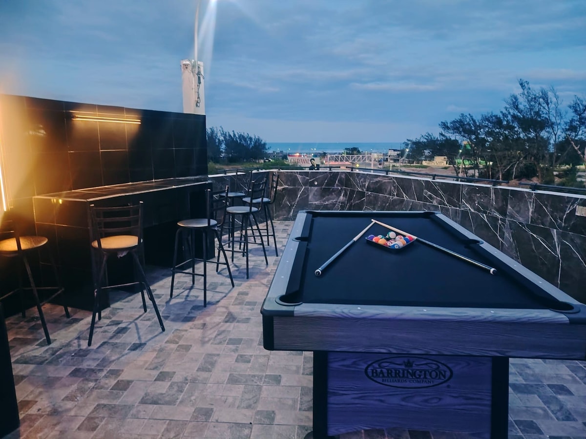 Det bästa läget för Miramar Beach, helt ny, med högkvalitativa ytor har 6 högkvalitativa sängar, höghastighetsinternet, helt nytt, med idealisk för din vistelse, belägen på huvudgatan Ciudad Madero, med gott om säker parkering. Missa inte en otrolig semester i centrum. Bara 5 minuter från stranden, pickles, restauranger vid havet. Beläget på viktig aveny av cd. madero. Parkering ingår.