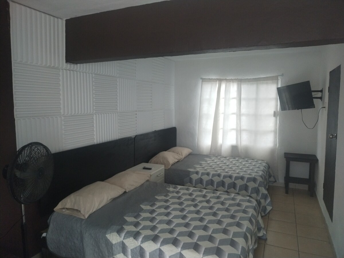 Mysig lägenhet med dubbelsäng, eget badrum med dusch, luftkonditionering och fläkt. Inkluderar WiFi, TV med streamingtjänster, kylskåp och grundläggande rätter att äta. Perfekt för kort- eller arbetsvistelser Vatten-, el- och internettjänster ingår så att du kan njuta av utan bekymmer. Bekvämt, funktionellt och väl beläget utrymme. 10 minuter från Laguna del Carpintero och nöjescentret, 20 minuter från centrala Tampico och 30 minuter från stranden. Vi fakturerar