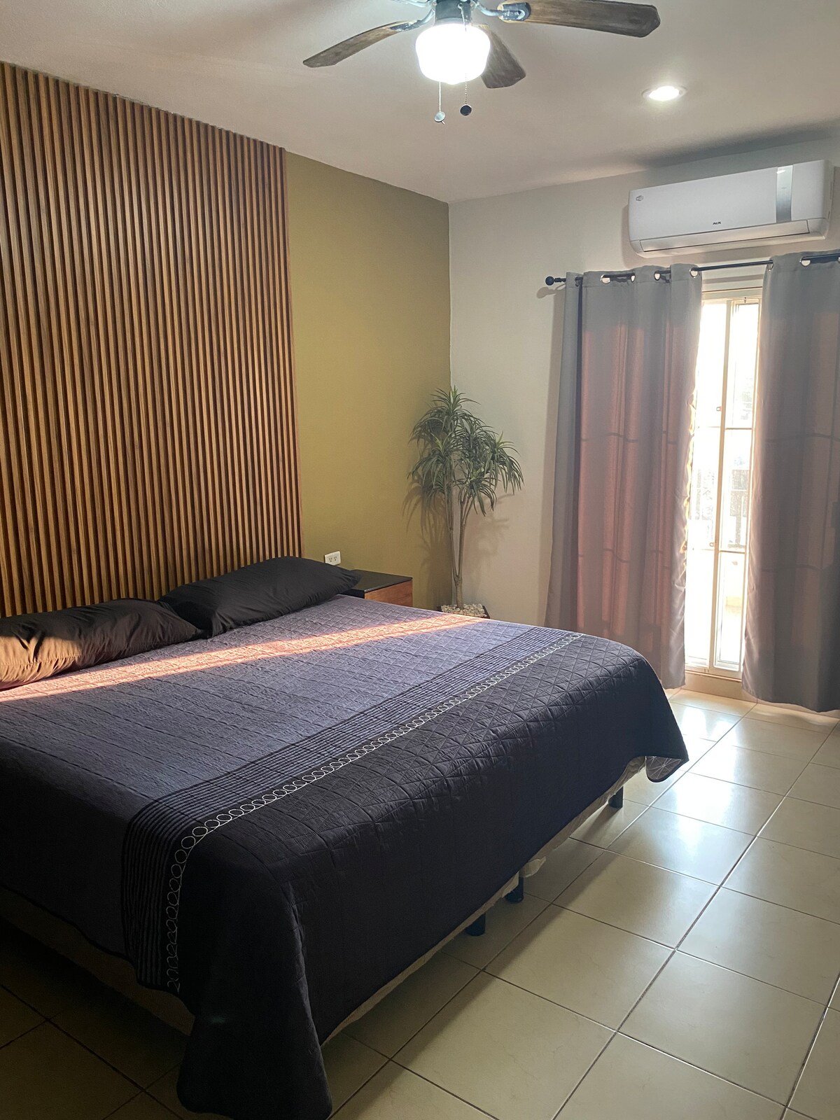 Oberoende lägenhet, King Size-madrass, fullt utrustat kök, kylskåp, dubbel grill, fläktkåpa, mikrovågsugn, kaffebryggare, brödrost, mixer, porslin, stekpannor, isbitar, Ciel-flaska, salt, peppar, olja, kaffe, socker och mjölk. Brädor, knivar, hårtork, strykjärn och burrito. TV-IZZI, A/C, WIFI, badrum med varmt och kallt vatten, handdukar, hårtork, toalett- och hushållspapper, schampo för hår, kropp och händer, rengöringsmedel, garage med tak och låst.