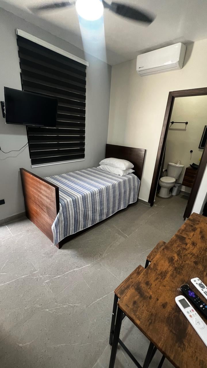 🛌 Cama queen size con 4 almohadas ✨ Diseño minimalista, limpio 📍 Ubicación céntrica en avenida principal 🚀 WiFi rápido ideal para trabajo remoto 📺 TV con Netflix incluido 🛋️ Sofá cama con canguro (comodidad extra) 🎵 Bocina iHome para música, con carga inalámbrica y Puerto USB 😌 Ambiente tranquilo 🚿Agua caliente 24hrs 🧊 Frigobar con congelador