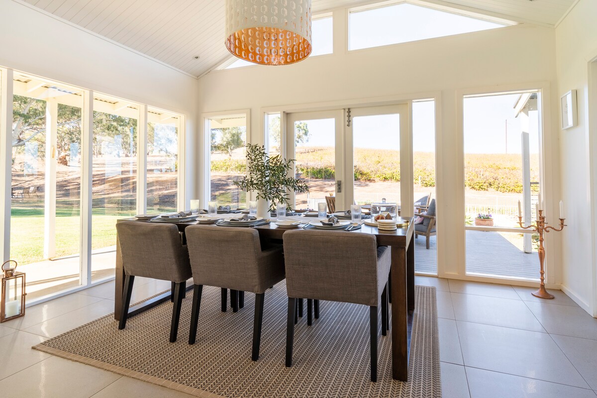 Vakna upp i en fantastisk vingård, en kort promenad från Skillogalee och Seven Hill Cellars, två kända vingårdar. Denna fridfulla tillflyktsort är perfekt för vinhelger, familjeutflykter eller resor med vänner. Njut av vinprovning, cykling, vandring, sedan återvända hem för att njuta av poolen, ett spelrum, lägereld på vintern. Fyra rymliga sovrum, två badrum, Wi-Fi, Netflix, ett fullt utrustat kök, en grill och uteservering. Denna idylliska tillflyktsort erbjuder komfort, bekvämlighet och en minnesvärd upplevelse.