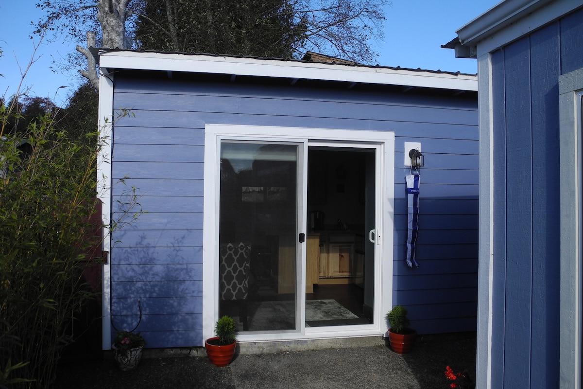 My Finnish Cabin is a cozy studio size dwelling with a full size bed, kitchenette including fridge, microwave, hot plate, toaster oven and coffee maker and a walk in tile shower. The dwelling sits in a private alcove behind my home. I'm located on the south slope of the Astoria hill, slightly over a mile from downtown Astoria. Privacy of my guests is important so there is a private walkway and entrance to the cabin. An outside sitting area is available. I welcome guests from all backgrounds.