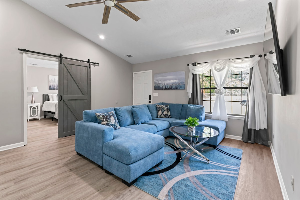 ✨ Välkommen till The Calming Loft! ✨ Din eleganta södra reträtt bara några minuter från Hartsfield-Jackson flygplats, centrala Atlanta, ATL Motor Speedway, Spivey Splash Water Park och Stockbridge Amphitheater. 🏡💫 Genomtänkt renoverad med modern design, mysiga texturer och lugna detaljer, inbjuder detta eleganta gömställe dig att koppla av, ladda om och känna dig helt bekväm. 🛋️🌿 Lägg till The Calming Loft i din önskelista genom att trycka på ❤️ i det övre högra hörnet – din nästa fridfulla flykt väntar! 🌅