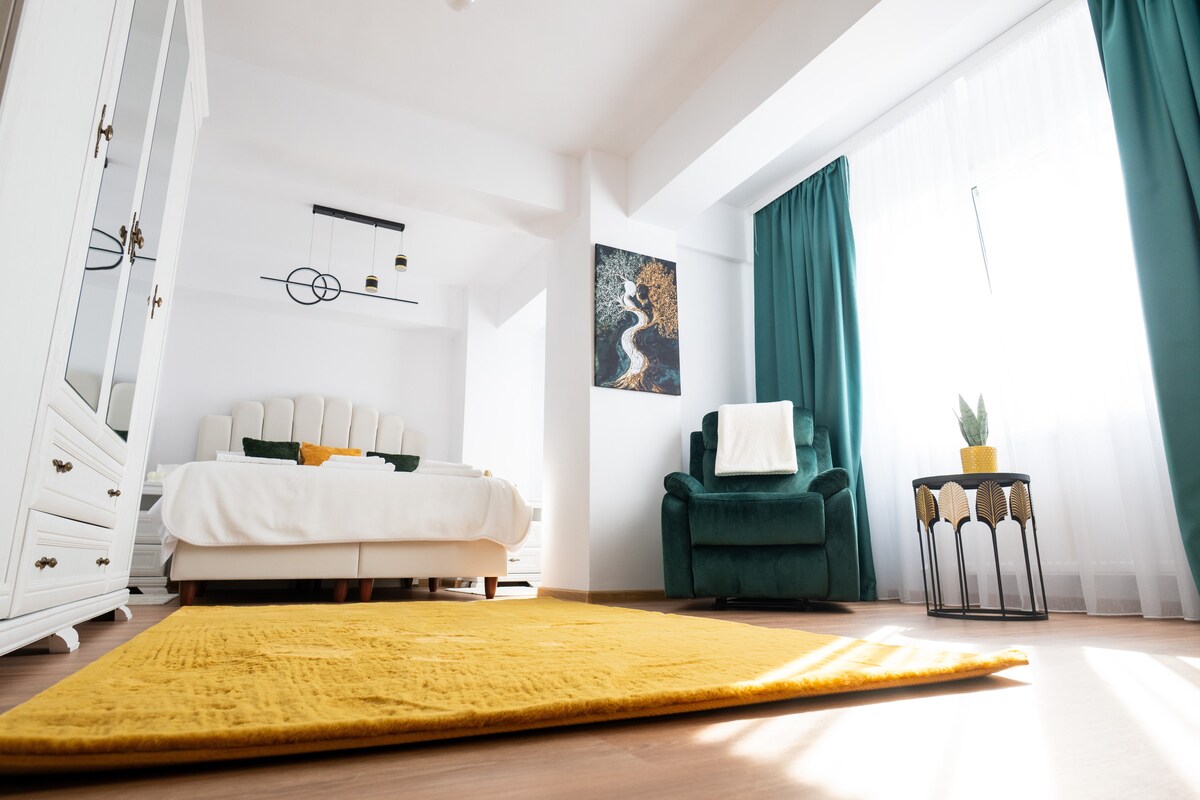 Vi inbjuder dig att njuta av en modern och välkomnande lägenhet, perfekt för par eller affärsresenärer. Du får enkel, kontaktlös incheckning och gratis underjordisk parkering. Vi ligger i ett lugnt område, nära universitetet och andra viktiga punkter i Suceava. Allt du behöver för en bekväm vistelse, som hemma.