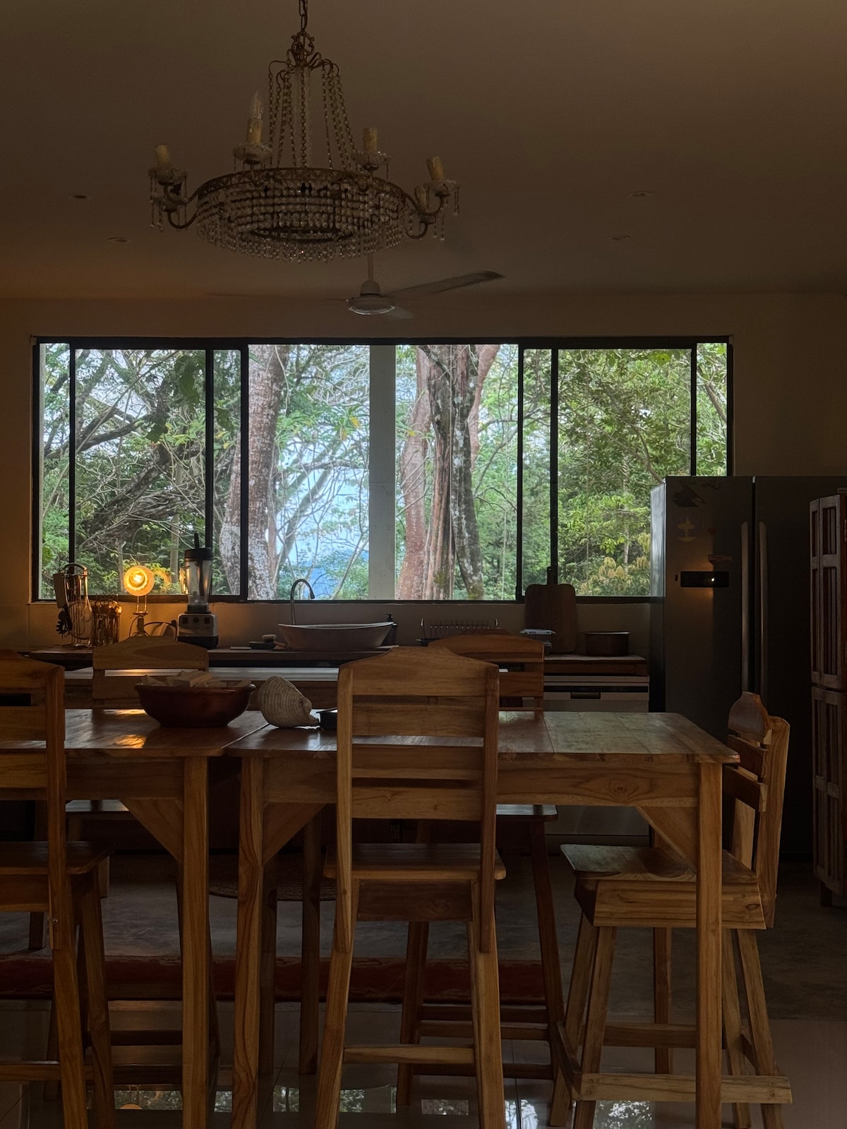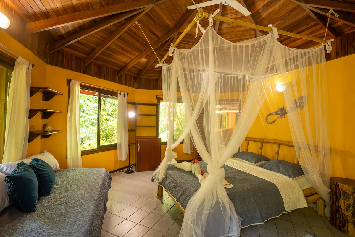 Kom och njut av en ny upplevelse i djungeln genom att bo i vår nya Treehouse byggd med en containerbas. Titta över trädtopparna till havet, och njut av att titta på fåglar och apor från din veranda. Snygga handgjorda möbler och design. Dusch i det fria, öppen himmelterrass.