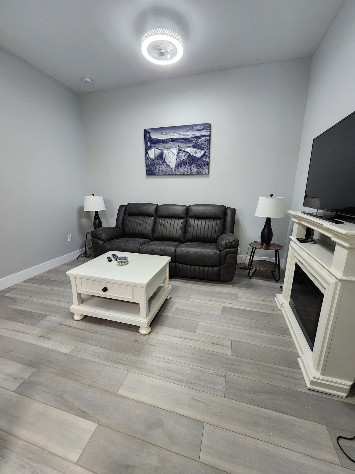 Welcome to Caribou Cove! Located downtown and minutes from the Marine Atlantic ferry terminal. This space provides all the amenities of home as well as breath taking ocean views. You are able to see the ferry arrive and depart from bedroom windows. Wifi, cable tv, full kitchen and in suite laundry are available for your convenience. One bedroom features two twin beds and the other a queen bed, both with comfortable bedding and mattresses. Come home and stay at Caribou Cove today!