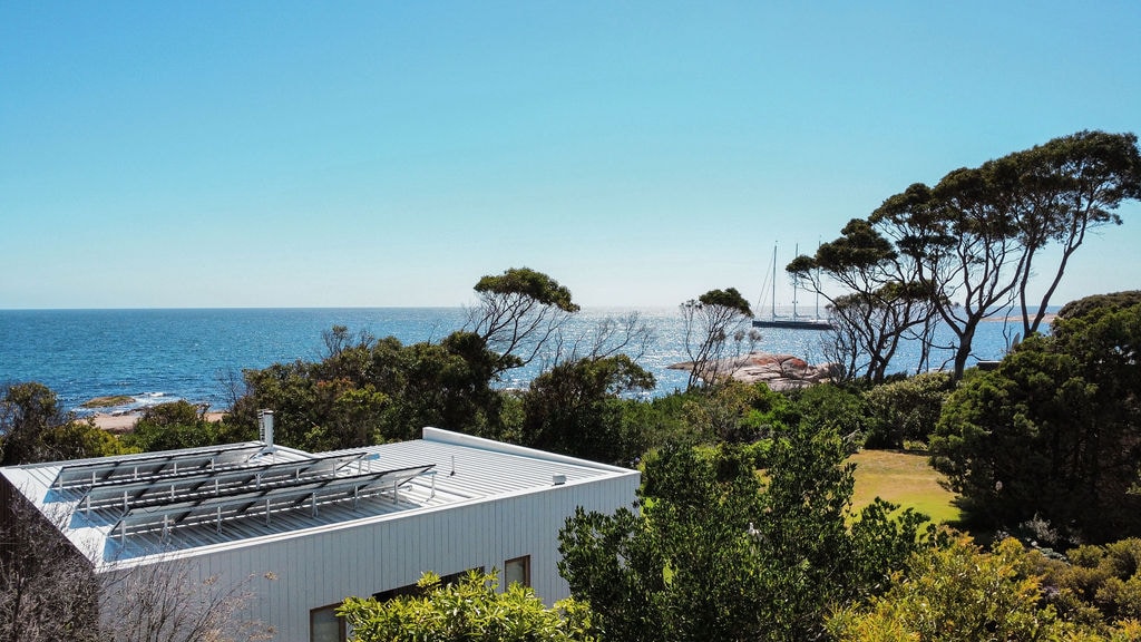 Koppla av på denna lugna tillflyktsort och njut av den fantastiska utsikten över havet från altanen. Lämna persiennerna öppna och vakna upp till en vacker soluppgång över havet. På dagen kommer du att se sälar som latar sig på klipporna och kan få en skymt av valar på deras migration. På natten kan du lugnt hålla utkik efter pingvinerna som går upp till sina bon. Butiker, restauranger, stränder och båtramp ligger alla inom 15 minuters promenad. Fantastiska vingårdar, stora buskpromenader, nationalparker och Wine Glass Bay ligger inom 30 minuter med bil.