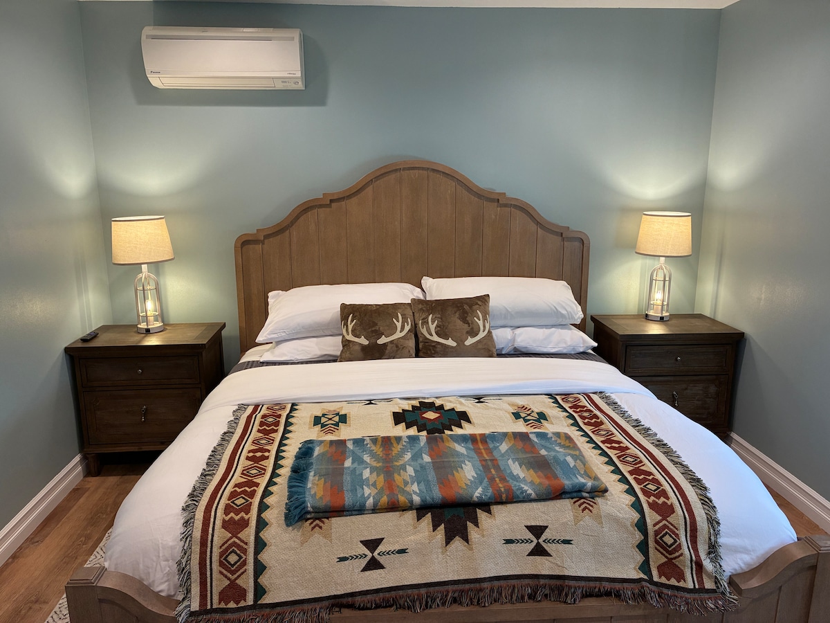 Ljust och rymligt Loft med öppet vardagsrum/matplats och kök. Stora, bekväma soffor placerade framför en varm och mysig gaskamin och Smart-TV. Förbered en måltid i det rymliga köket med alla nya vitvaror och skåp. Alla nya rätter, kokkärl och redskap. Njut av kaffe på uteplatsen från en Keurig. Det finns 2 sovrum med Queen size sängar och ett öppet Loft område längst upp på spiraltrappan med en Queen säng också. Bra ställe att njuta av familj och vänner.
