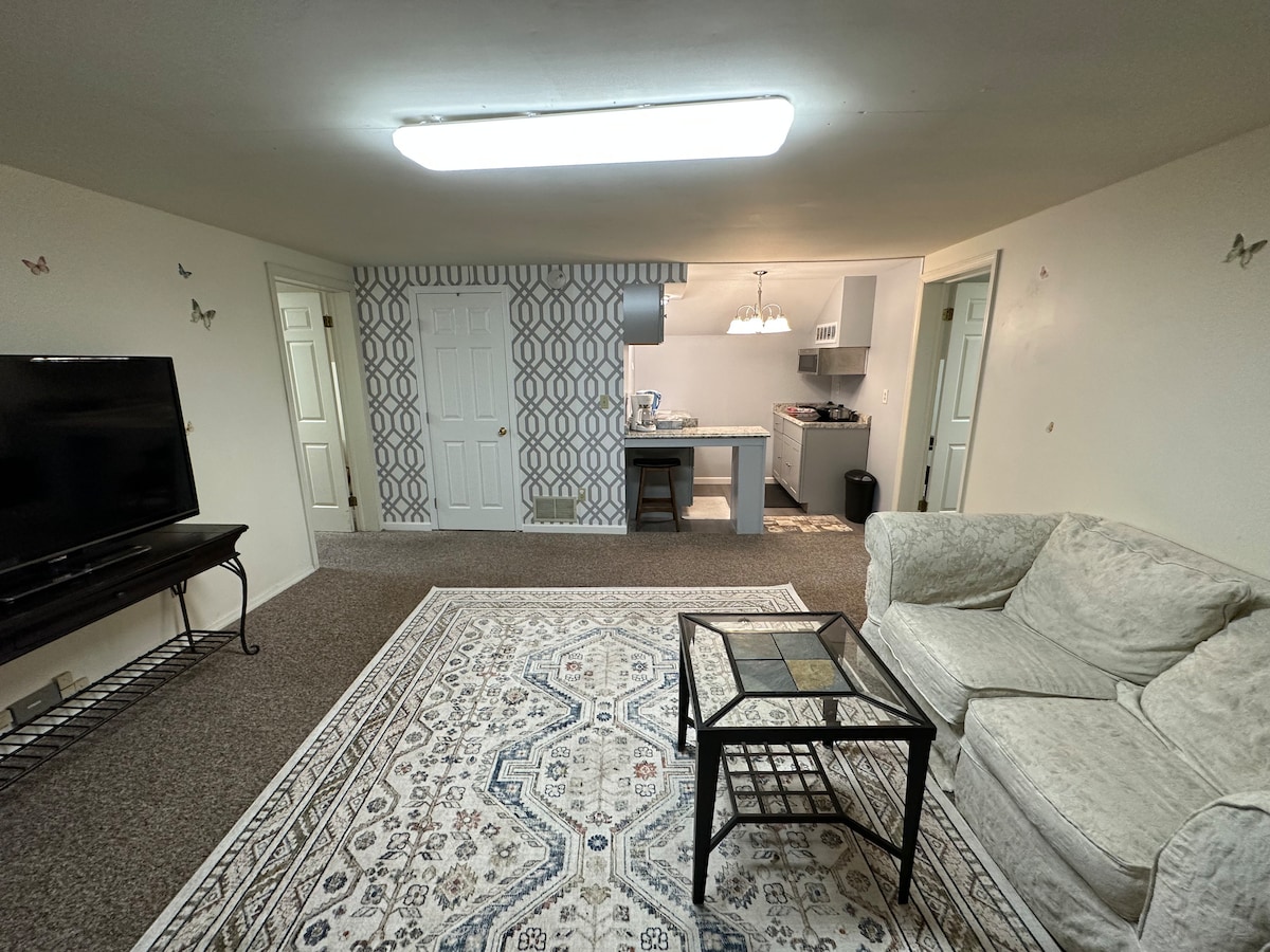 - Lugnt bostadsområde - Nyrenoverad källarlägenhet - Inga trappor att gå uppför - Tvättmaskin och torktumlare bekvämt tillgängliga - Idealisk för en helg eller en längre vistelse 30 dagar + -Enkel självständig incheckning med smart lås -Öppet kök, matplats och vardagsrum - Helt ny madrass och kuddar med skyddande överdrag - Kaffebarområdet har en kaffemaskin av märket Keurig Nära Penn State & Beaver Stadium (15 minuters bilresa), Mt. Nittany Hospital, Tussey Ski Resort & Grange Fair mark.