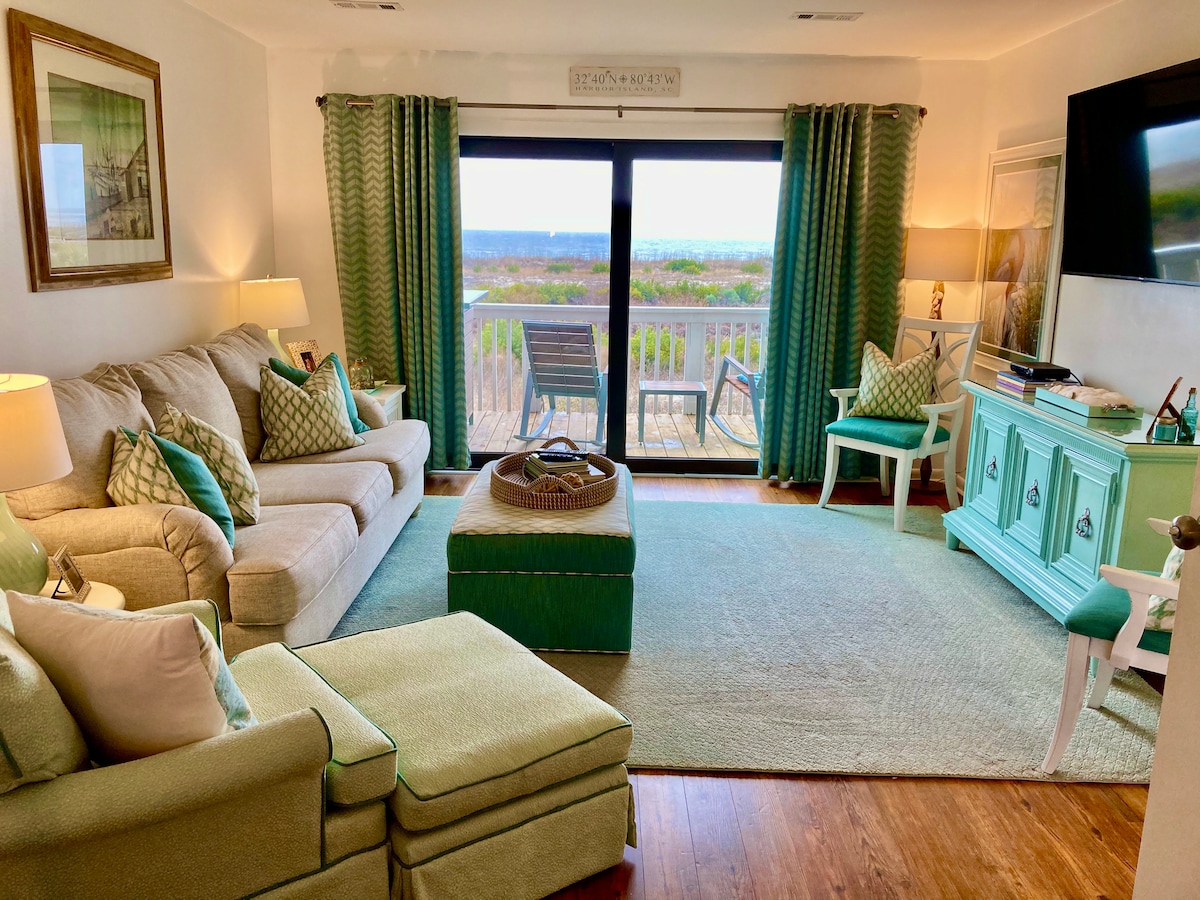 "Edisto Easy" är en charmig, första våningen, superren, 2BR/2BA lägenhet på Wyndham Resort, perfekt för 4 gäster. Njut av lugn utsikt över Plantation Golf Course 8:e green och 9:e tee box. Bara 5 minuters promenad till klubbhuset, poolen, rekreationsrummet och strandcabana, med stranden bara 1 mile bort. Passerkort till bekvämligheter på resorten finns tillgängliga i rekreationscentret. Måste vara 25+ för att boka. Boka nu för en avkopplande Edisto-semester!