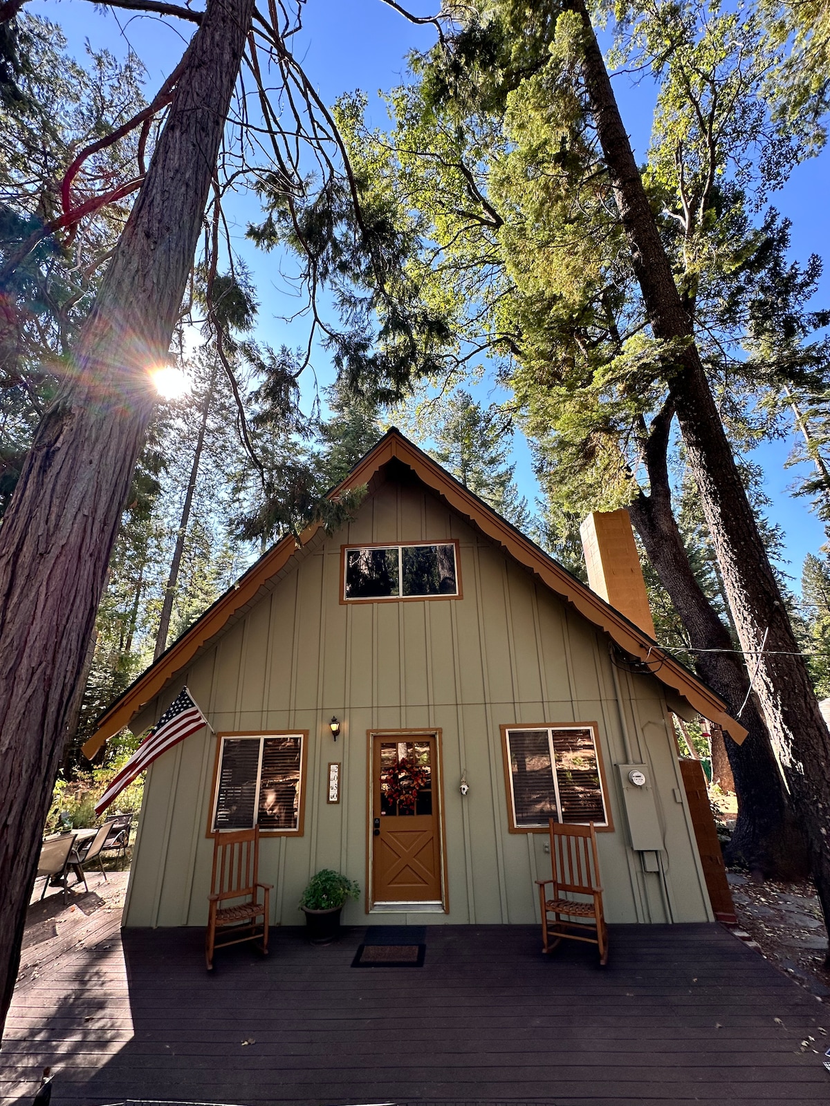Perfekt beläget 5 minuter från stadens centrum och det lugna Sly Park Recreation Area/Jenkinson Lake, gör denna mysiga stuga det enkelt att doppa tårna i äventyr. Med Apple Hill gårdar bara 10-15 minuter bort, Placerville 20 minuter nerför backen, och South Lake Tahoe en kort 45-60 minuters bilresa, är du aldrig långt från kul. Men den riktiga magin sker hemma. Vakna till frisk skogsbrus, koppla av på däcket med en kopp kaffe och låt lugnet i naturen vara ditt dagliga soundtrack