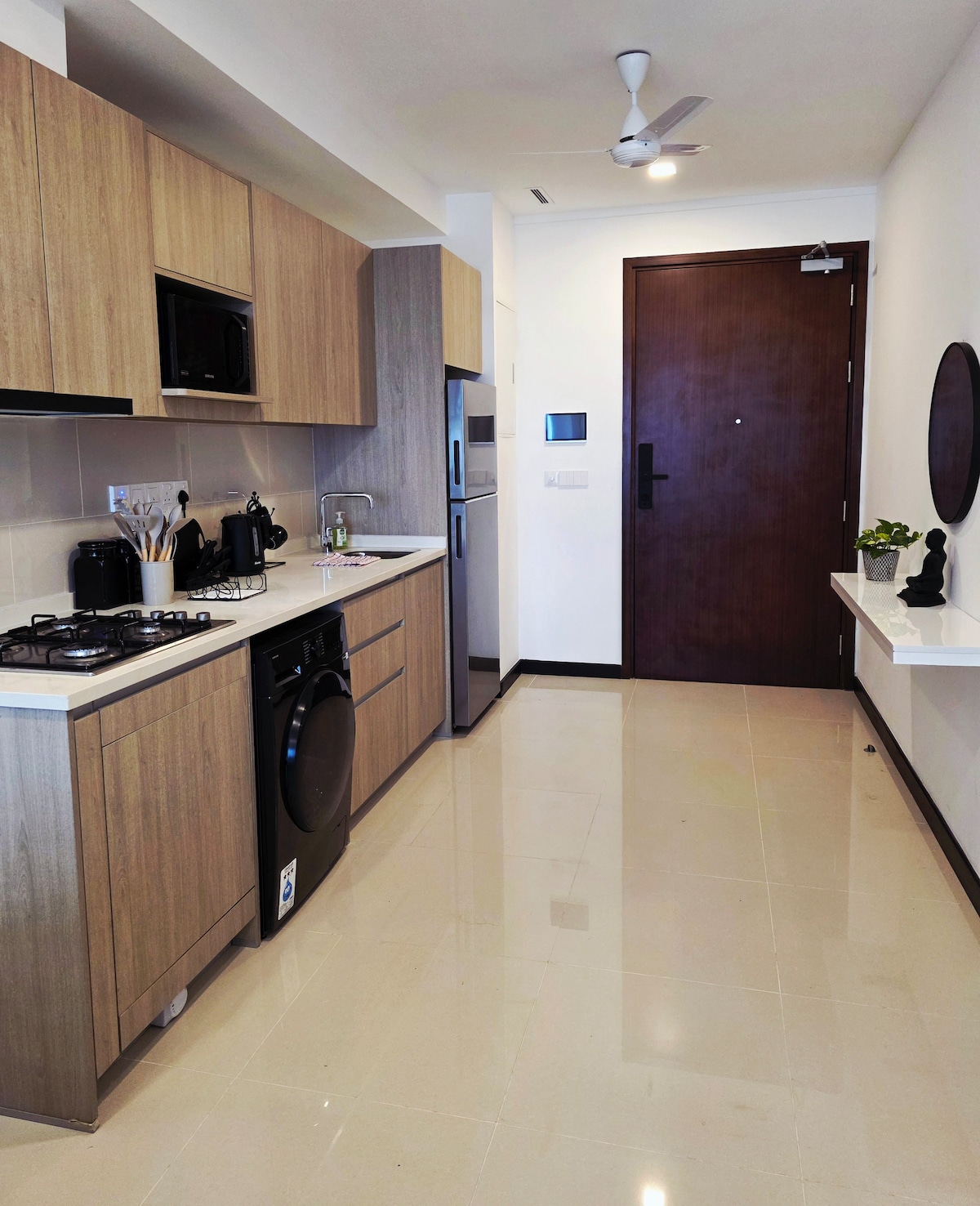 Denna centralt belägna smarta lägenhet med 1 sovrum, idealisk för familjer, par och affärsresenärer, erbjuder en bekväm och smidig vistelse i Colombo. Lägenheten ligger bekvämt nära shopping, restauranger och viktiga sevärdheter i staden och har ett fullt utrustat kök samt en tvättmaskin med inbyggd, snabb Wi-Fi och smart-TV. Invånarna har också tillgång till delade bekvämligheter, inklusive ett gym, joggingbana, simbassänger, bio, parkering och en badmintonbana.
