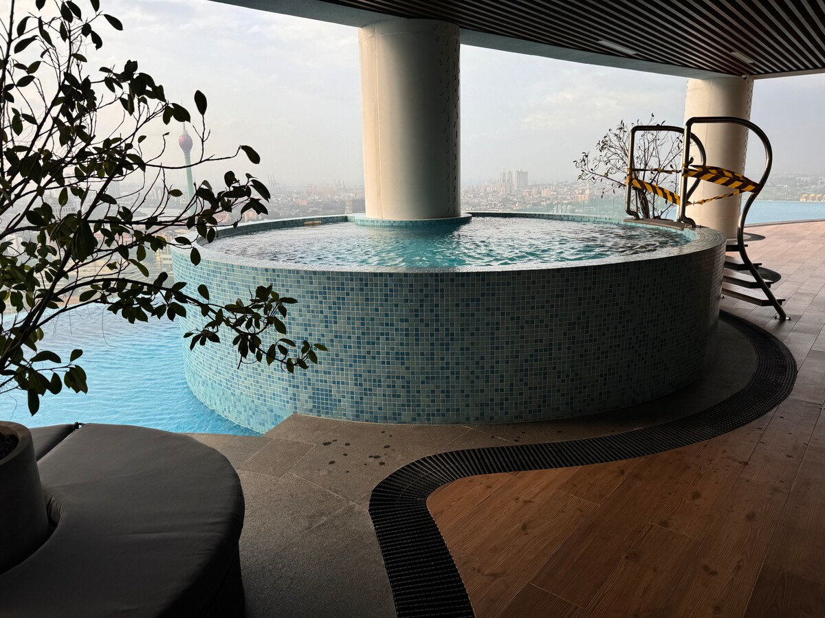 ~Panorama Suite~ Bo ovanför staden i vår eleganta Trizen-lägenhet på 53:e våningen, med fantastisk utsikt över Colombos skyline. Med gästtillgång till två pooler, en lekplats för barn, sittgrupp på taket, ett modernt gym och gratis parkering. Perfekt för familjer, par eller affärsresenärer, det är ett utrymme som är utformat för både avkoppling och lätthet. Med ett idealiskt läge i hjärtat av Colombo är du bara några minuter från stadens främsta sevärdheter, lokala hotspots och matställen.