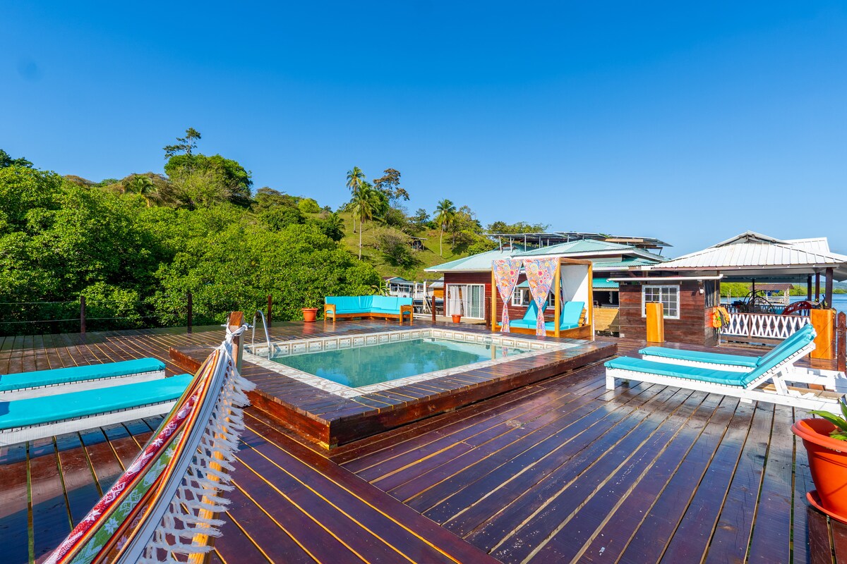 Bo i en privat bungalow över vattnet på Six Pillars Resort, Isla Bastimentos. Vakna till havets ljud, simma från ditt däck och njut av solnedgången. Har en dubbelsäng, vardagsrum och ekoluxury design som drivs av solenergi. Koppla av vid infinitypoolen, njut av mat från gård till bord (när det är tillgängligt) och utforska Bocas del Toro med kajakpaddling, snorkling och ö-turer. En oförglömlig blandning av natur, kultur och komfort. Kustfiske på begäran (om vädret tillåter)