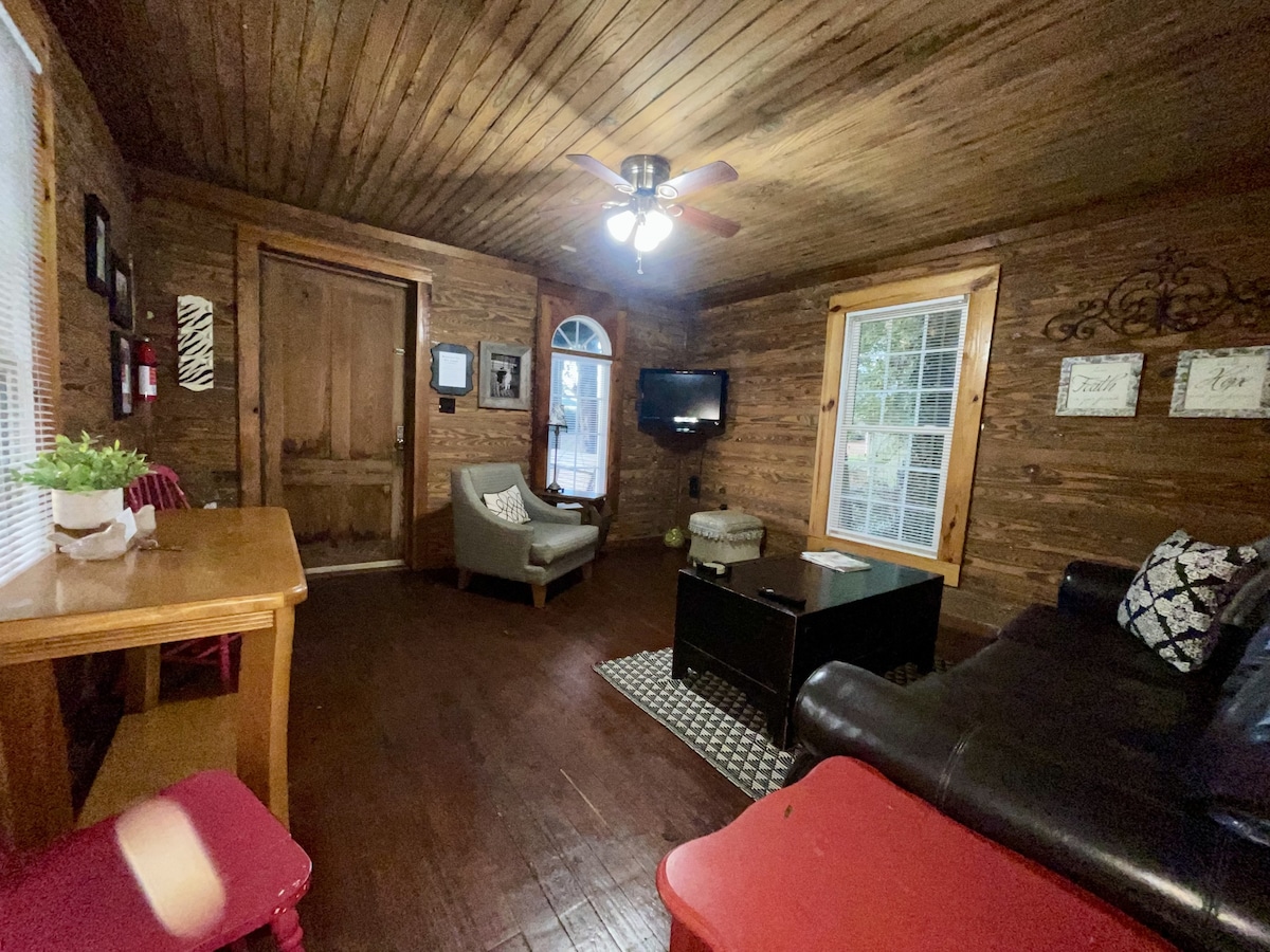 Charmig 3BR/3BA bredvid dammen och gömd bland träden! Pittoreskt landskap med gott om bekvämligheter och aktiviteter. Perfekt utrymme för vänner och familjer att samlas. *Rymlig matplats inomhus och utomhus *Kajak, fisk + paddelbräda i 2+ hektar damm *3 queen-sängar, 2 enkelsängar och 1 queen-bäddsoffa * Barnkammare med spjälsäng + gungstol 2 skyddade uteplatser med bekväma sittplatser. Kaffe + basvaror finns. Naturstigar att utforska. Ofta ser man rådjur och fåglar! Öppet för evenemang och sammankomster; måste godkännas av ägaren.