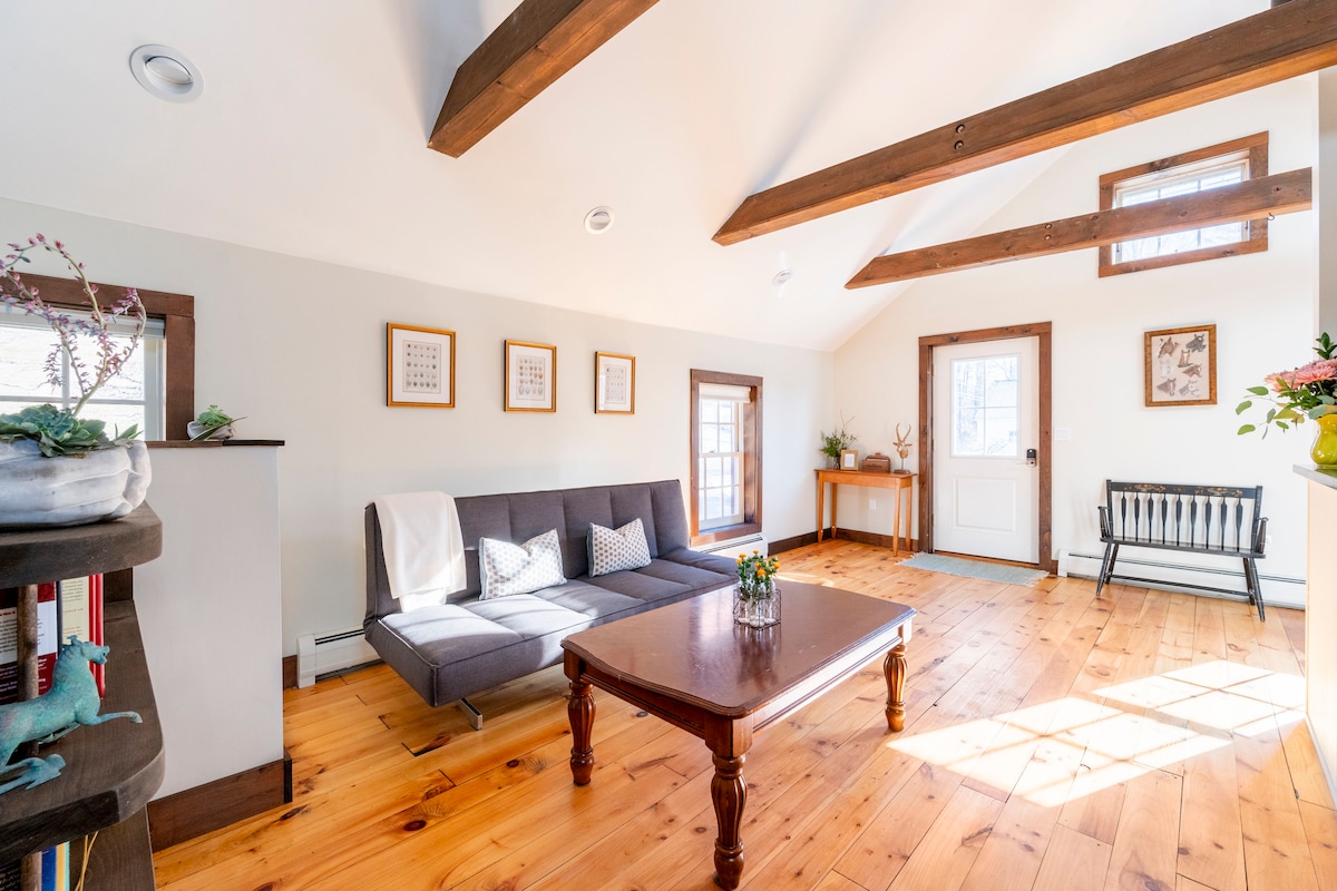 Lugn 900 kvadratfot gäststuga belägen åtta miles från Hudson, centrum. Gästhuset ligger nära huvudhuset och har en egen ingång och delvis avskärmad sten uteplats - solig, ljus, glad inredning med dubbelsäng. Badrummet har dusch, uppvärmda golv och tvättmaskin och torktumlare. Köket har mikrovågsugn, kylskåp, kaffebryggare, brödrost och vattenkokare.